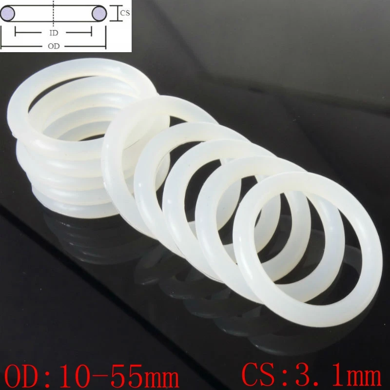 Белое пищевое Силиконовое резиновое уплотнительное кольцо шайба поперечное сечение 2 мм OD 5-46 мм