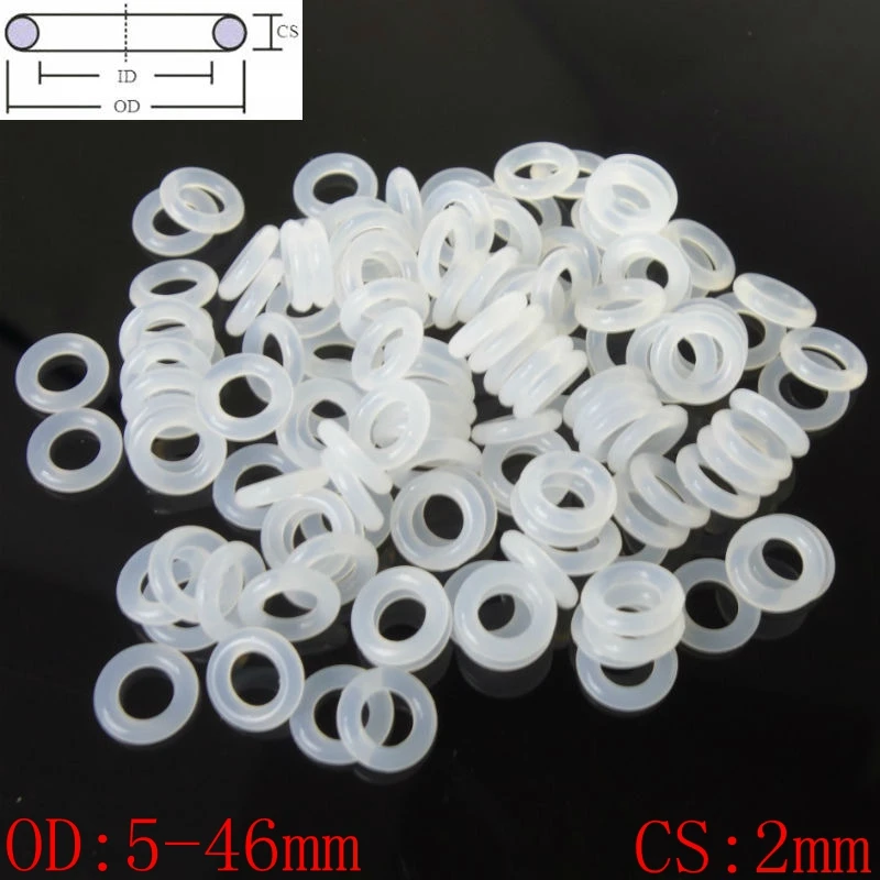 Белое пищевое Силиконовое резиновое уплотнительное кольцо, шайба, сечение 2 мм OD 5-46 мм