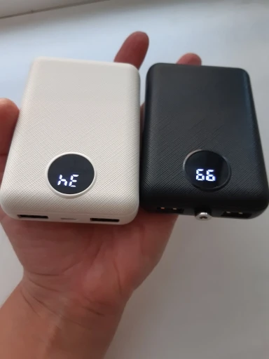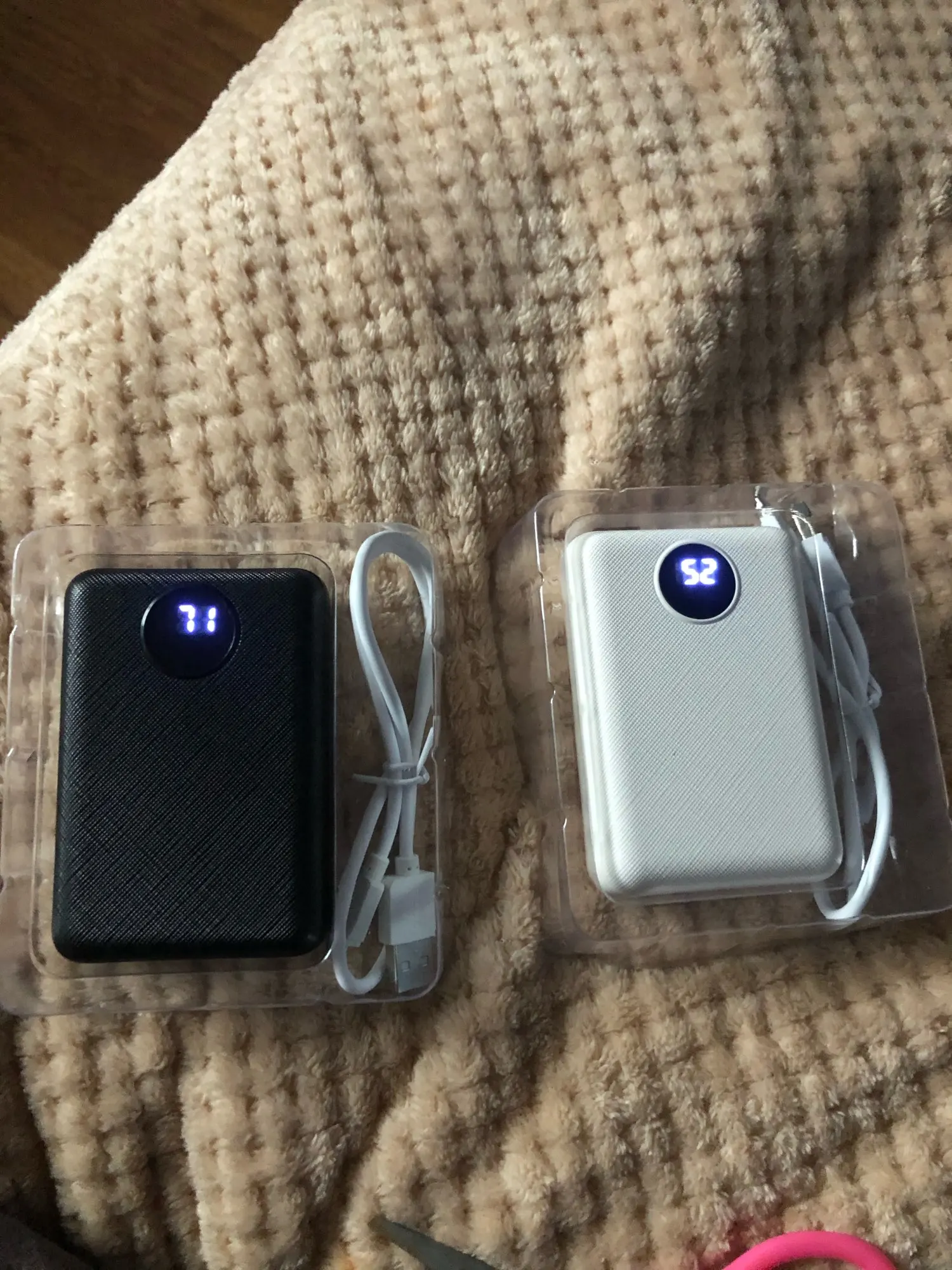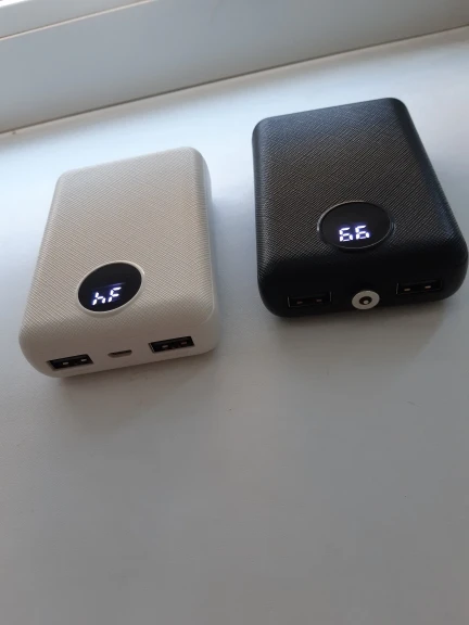 Заказывала в белом и чёрном цвете себе и мужу. Доставили в рекордные 4 дня в СПб курьером. Упаковано в пупырку, каждый в своей коробке. В комплекте сам пауэр банк и хвостик микро USB. Инструкция на английском языке на самой коробке. Выглядят хорошо, без каких либо внешних повреждений и огрехов сборки. Маленькие, но очень увесистые. Пришли оба заряженные на 90%. Два гнезда для обычной и быстрой зарядки. Сбоку кнопка включения, выключаются сами через несколько секунд без подключенных устройств. Заказом довольна. Продавцу и курьерской службе спасибо.
