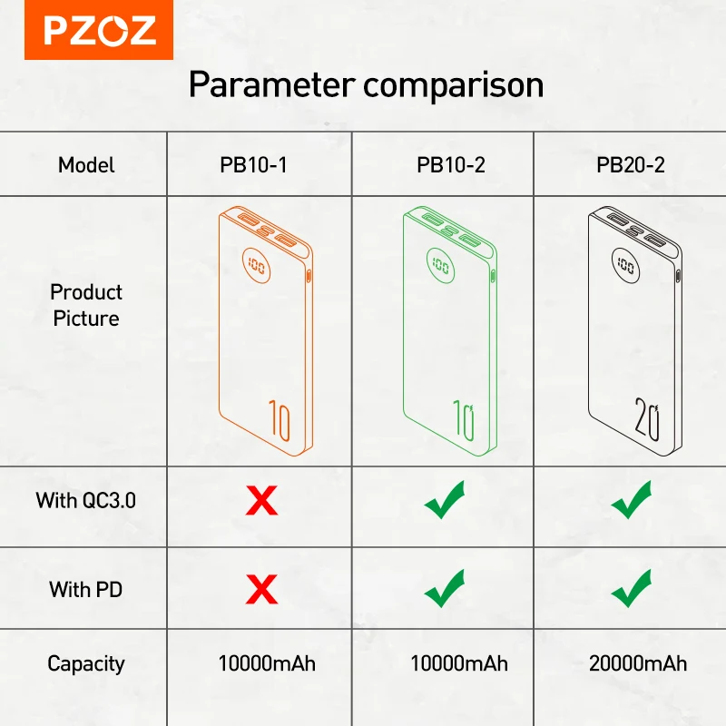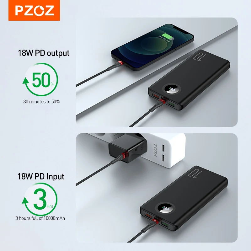 Внешний аккумулятор PZOZ, ёмкость 10000мАч или 20000мАч, Портативное зарядное устройство, Мобильный телефон Быстрая зарядка внешнего аккумулятора, Для iPhone Xiaomi пауэрбанк