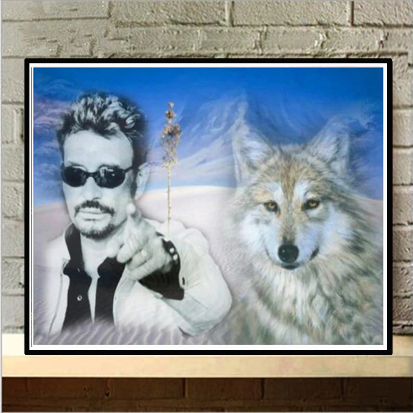 Полностью квадратная/круглая дрель 5D DIY Алмазная картина "Johnny Hallyday & wolf" вышивка крестиком Мозаика домашний Декор подарок NEW754