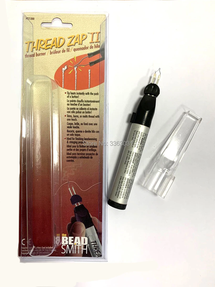 Для использования резьбы Zap II:Просто нажмите и удерживайте черную кнопку, расположенную сбоку, чтобы активировать нагревательный элемент на кончике. Обычно вы увидите небольшой поток дыма, указывающий на то, что наконечник достаточно горячий для использования. Продолжая удерживать кнопку, кратковременно коснитесь кончика до места на резьбе, где вы хотите ее разрезать, расплавить или сжечь. После достижения желаемого результата оставьте несколько секунд, чтобы нить остыла, прежде чем прикоснуться к бусинам в этой области. Замените прозрачный колпачок на нагревательный элемент.Не храните без прикрытия на месте.