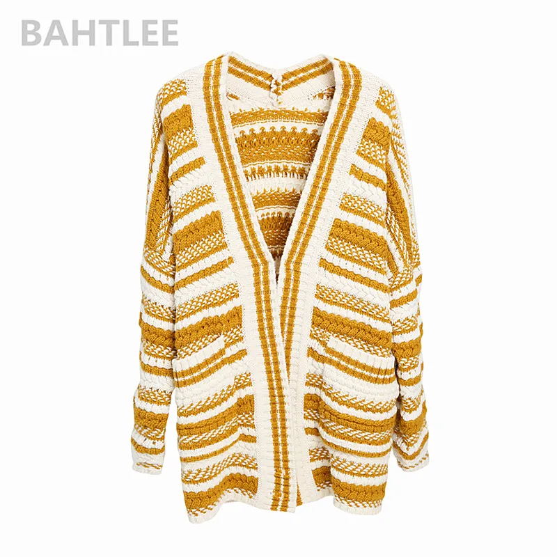 Зимние женские шерстяные кардиганы BAHTLEE, вязаный свитер с V-образным вырезом и длинными рукавами, жаккардовые, вязаные, плотные, теплые