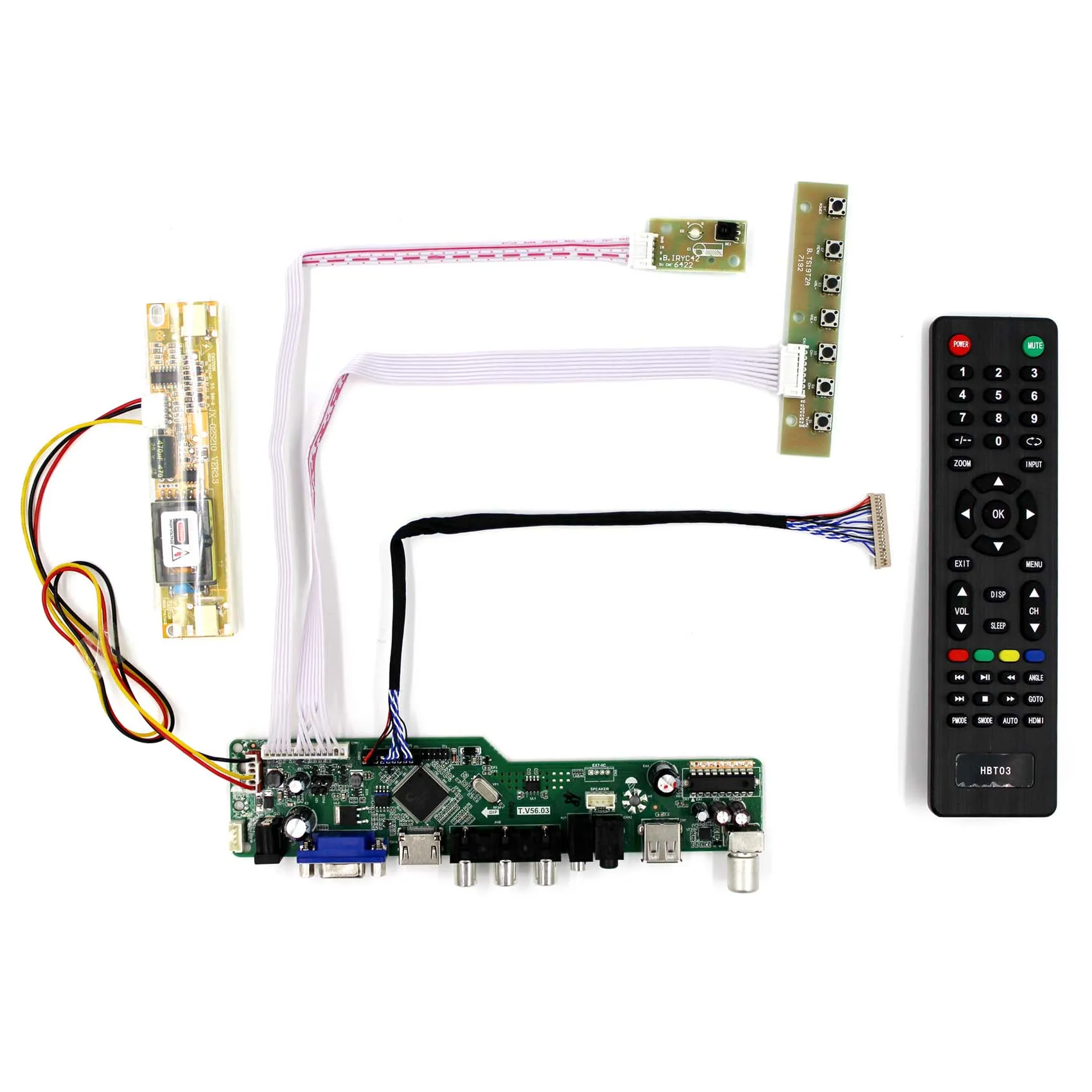 Упаковочный лист:1 × HDMI VGA AV USB RF LCD плата контроллера T.V56.03 1 × 2 CCFL плата инвертора 1 × 20Pin сигнальный кабель1 × Клавиатура с кабелем 1 × Пульт дистанционного управления (батарея в комплект не входит)