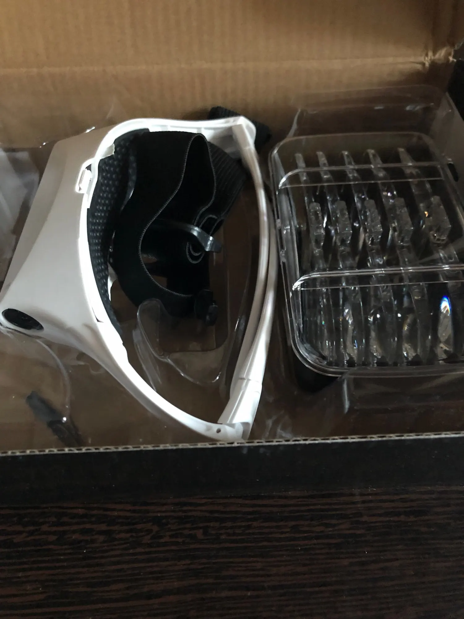 Очки супер. Всё как в описании. Курьер на дом доставил,было смс уведомление ватсап . Лампочку проверю завтра ,так как батареек нет,их покупать отдельно надо. 2 батарейки мизинчиковые. Доставка до Норильска очень быстрая оказалась на 9 день пришли после заказа.