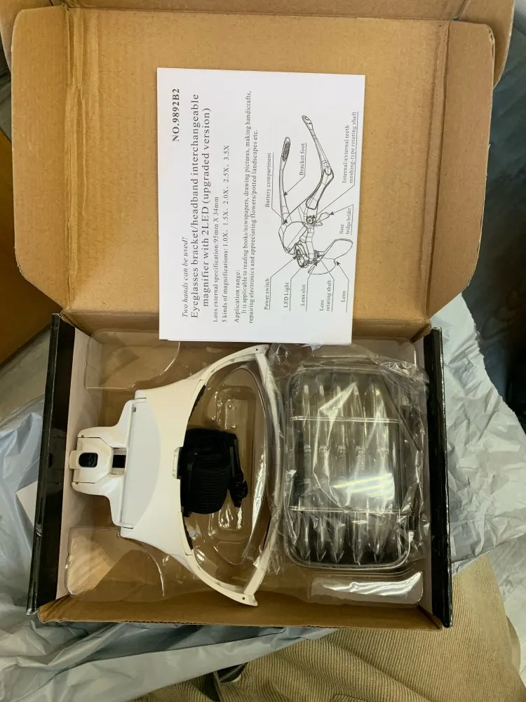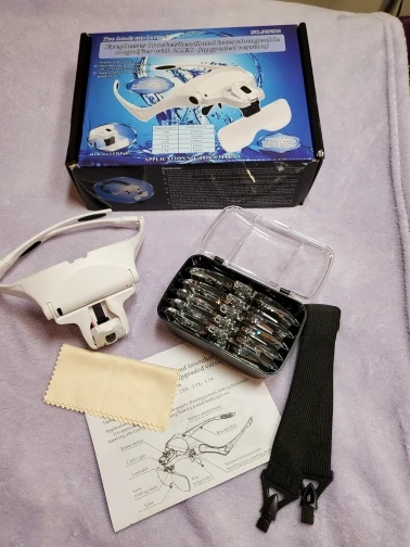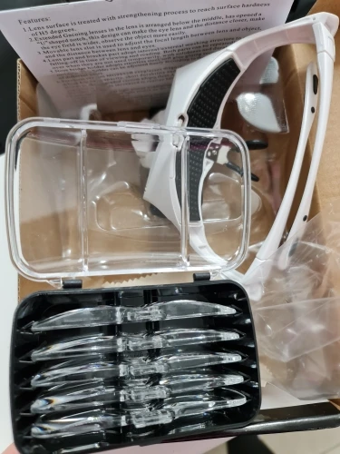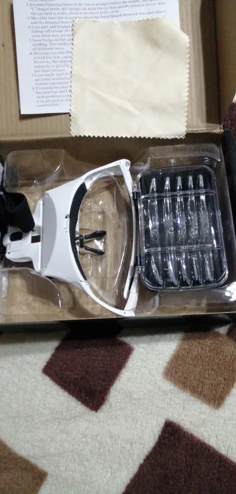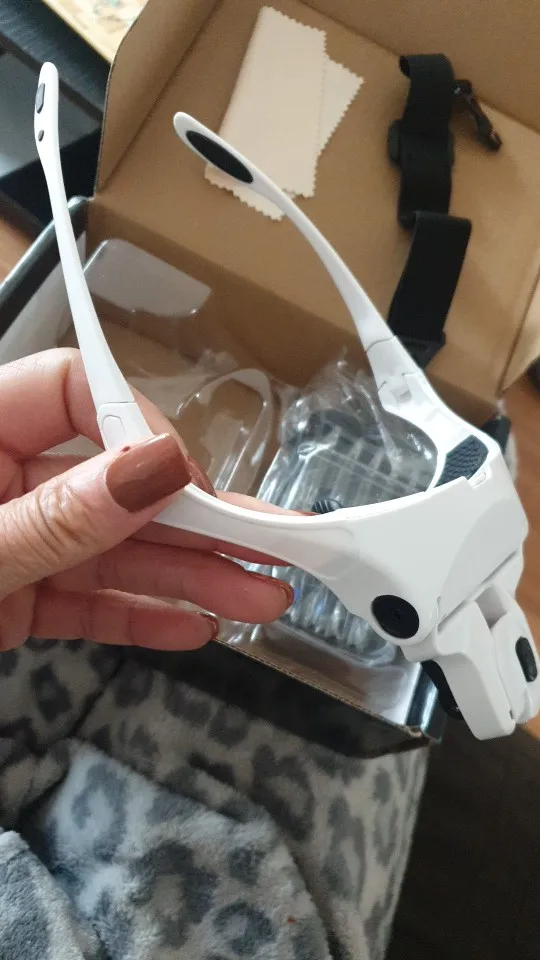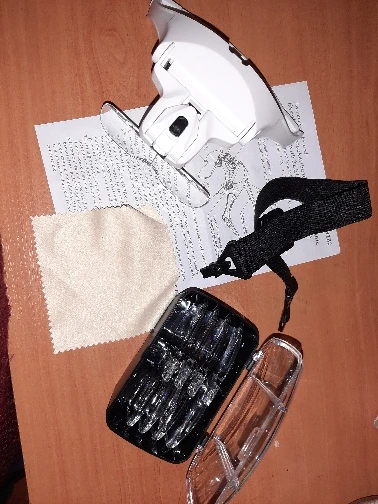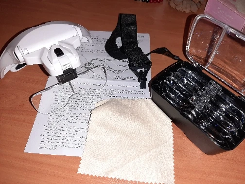 Товар пришёл очень быстро, все соответствует описанию, на первый взгляд очки понравились, лупы увеличивают очень даже хорошо, есть подсветка, светит точечно. В деле ещё не пробовала.