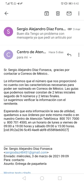 Посылка прибыла в Мексику, и курьерская служба качества-это та, которая доставляет посылку, этот курьер сообщает, что я уже отправил их на мой домашний адрес, и это неверно, это лгать, Я никогда не доставляю их на мой домашний адрес, и вы не сообщаете мне; Кто получил его, Или кто я должен расписаться? И AliExpress получает информацию о доставке и не возмещает деньги. Это не вина продавца, я запросил у них помощь с запросом адреса AliExpress, но они не отправили его. Это 13 упаковок, которые я никогда не доставляла по почте качества.