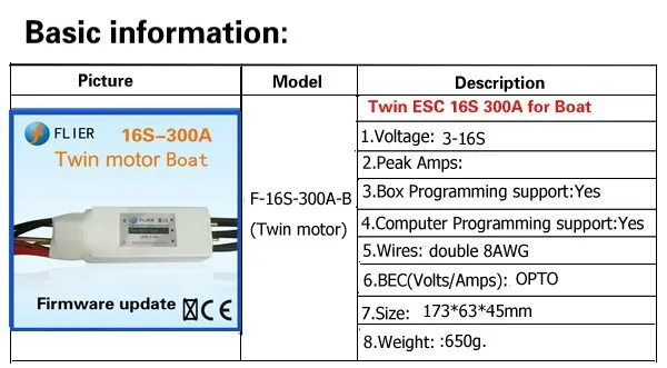 Контроллер скорости FATJAY FLIER 300A 3-16S, бесщеточный контроллер скорости с двойным приводом и двумя двигателями ESC, с usb-кабелем для программирования для радиоуправляемой лодки