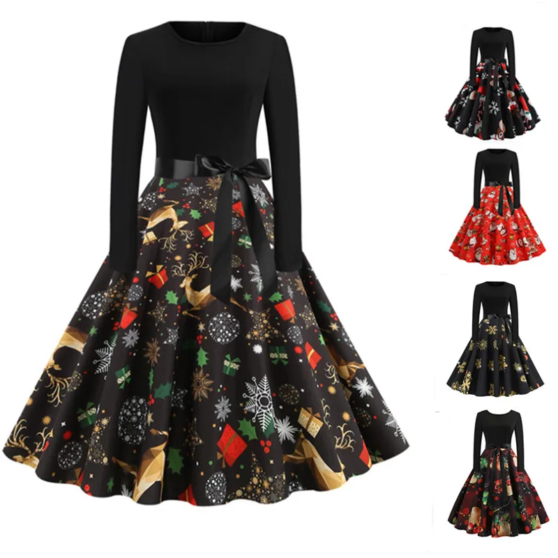 Элегантное женское винтажное рождественское платье с длинным рукаво...