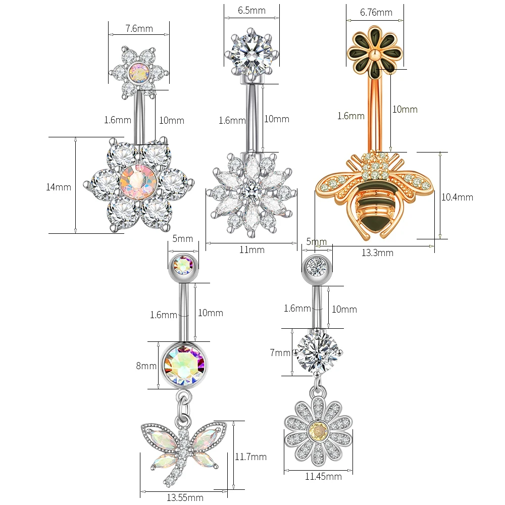 1 шт. Циркон ювелирные изделия для тела хирургическая сталь пупка пирсинг цветок кулон пупка кнопки кольца болтающееся кольцо для пирсинга пупка номбрил мяч
