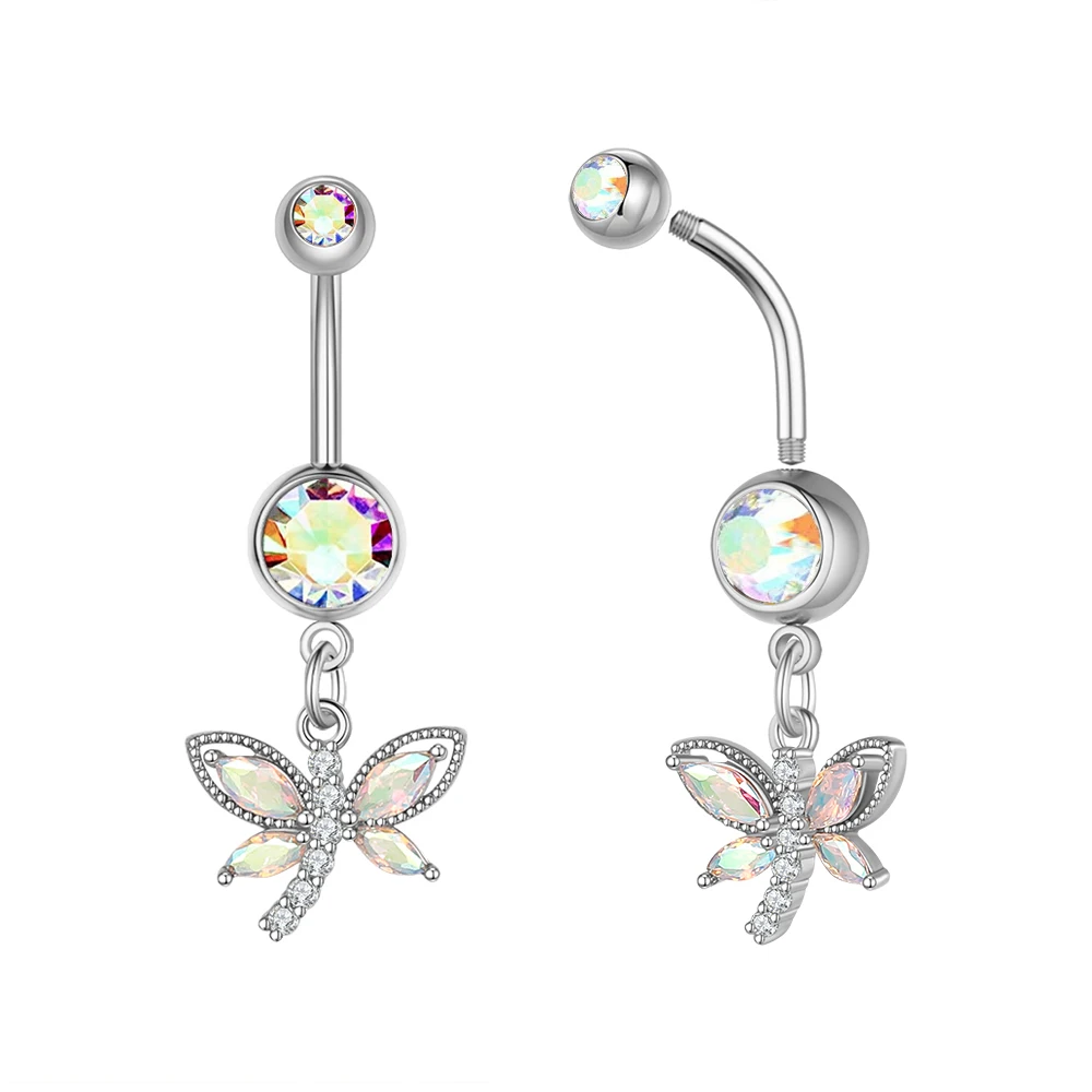 1. Стиль: Стрекоза Бабочка пупка кольцо в форме сердца болтается живот пирсинг