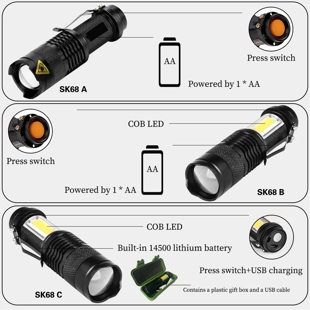 Светодиодный фонарик Q5 LED 14500 AA лампа 3 режима портативный зум Открытый Кемпинг фонарик водонепроницаемый светодиодный мини тактический фонарь
