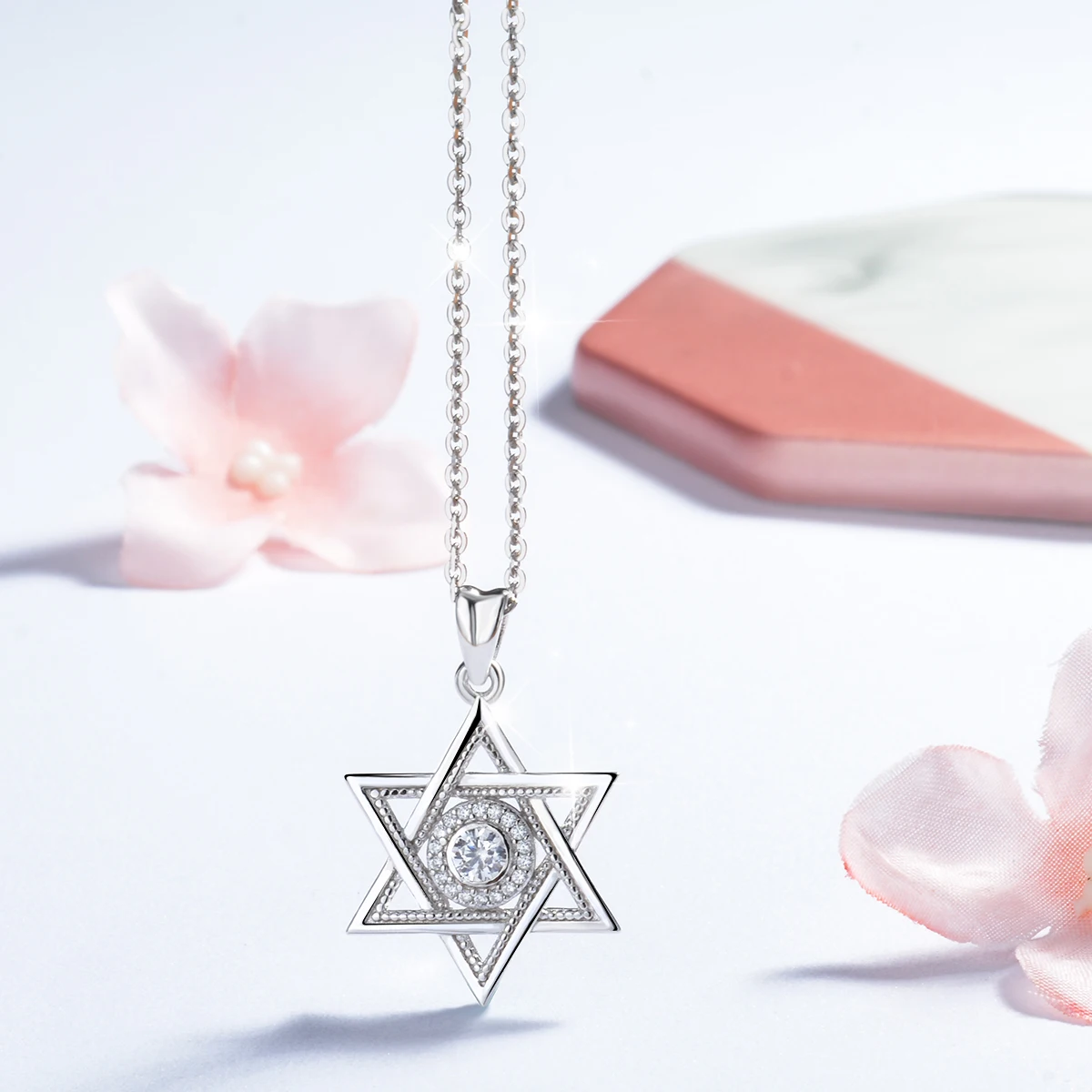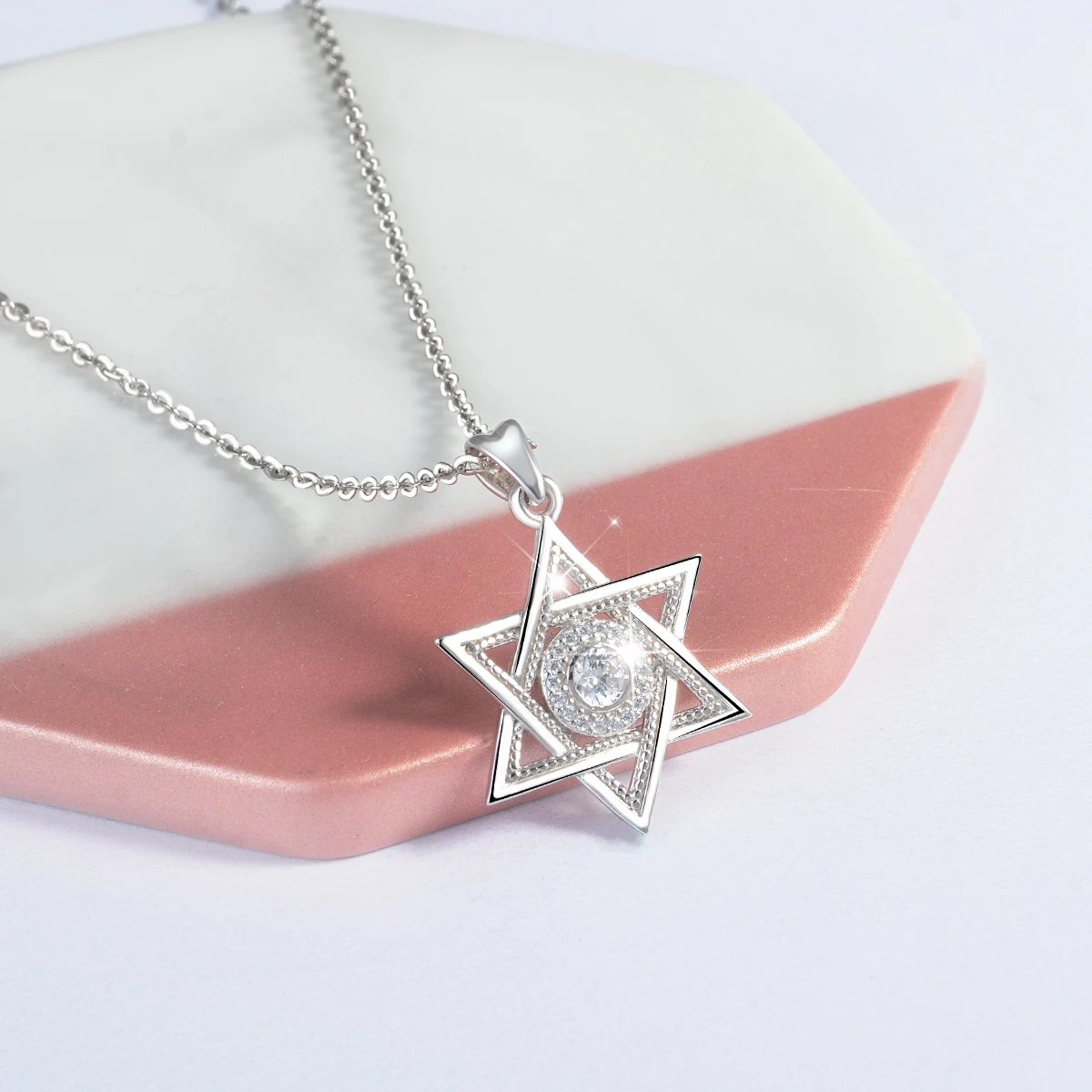 Ювелирное изделие из стерлингового серебра 925 пробы со звездой Давида и кубическим цирконием, модное ожерелье с гексаграммой CZ, Подарок на годовщину, D334