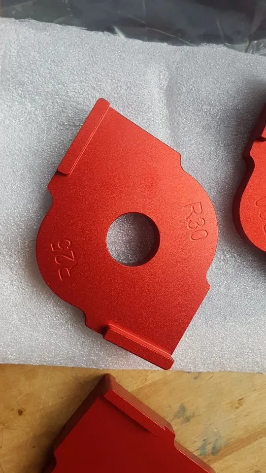 product had minor indentations in some parts on arrival. I Don't think it will mark any wood used on. I also think strong double sided tape would best be used, not just your fingers. I ordered all three and can't wait to use them. definitely a recommendation.
