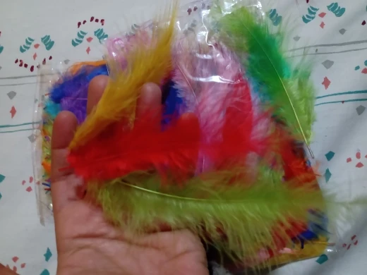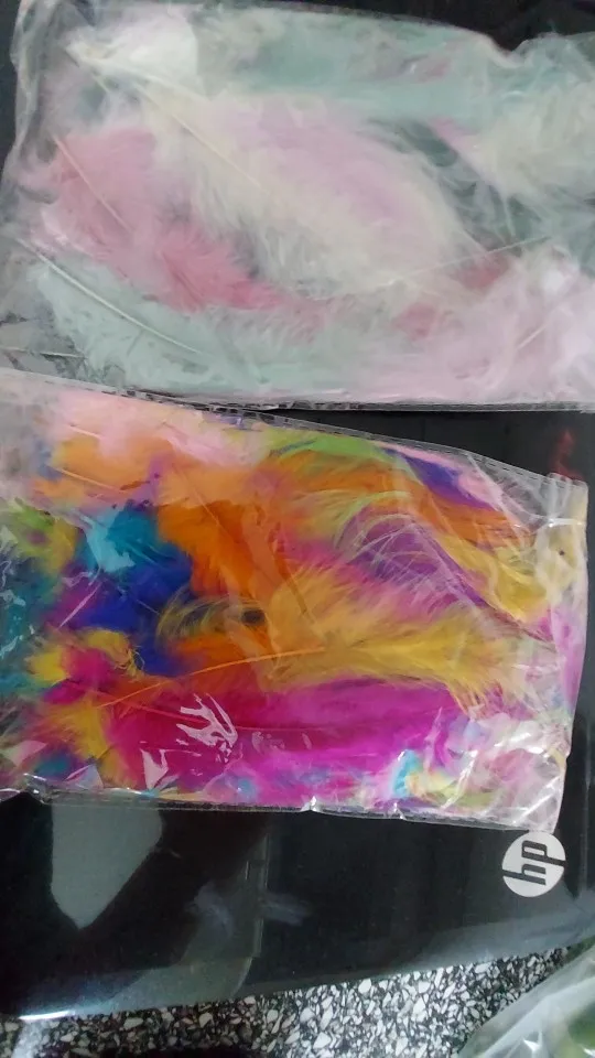 Доставка в течении трёх недель в Украину, НП. Все разного размера, цвета яркие. Посылку разрезать осторожно, а то можно перья отрезать