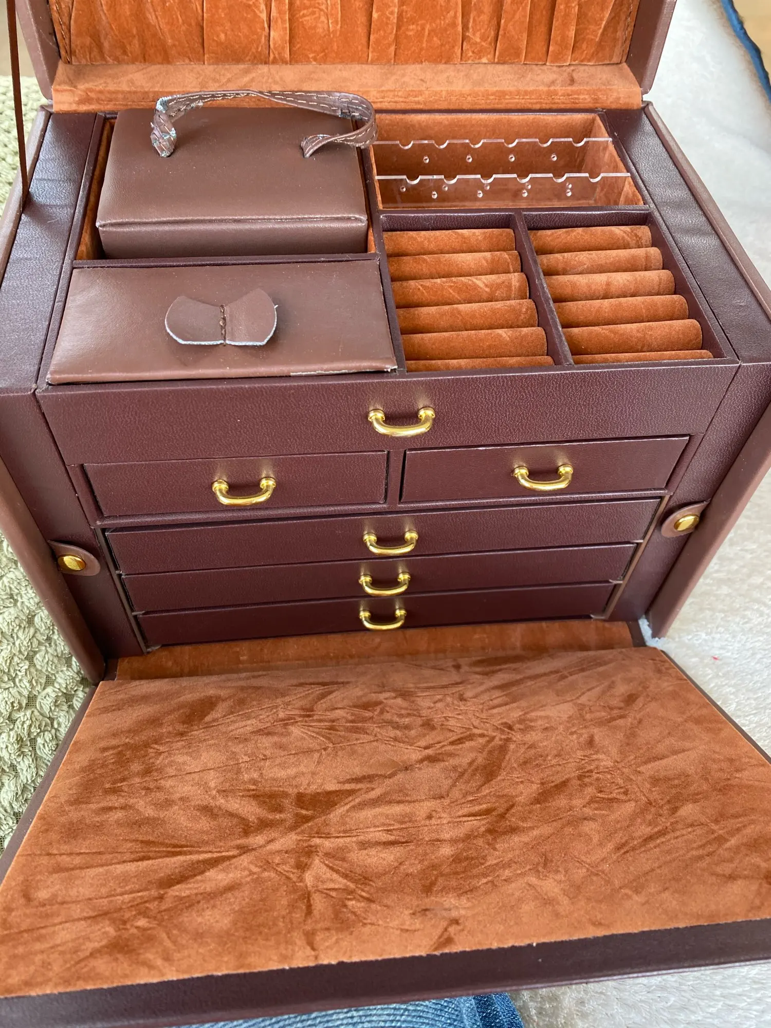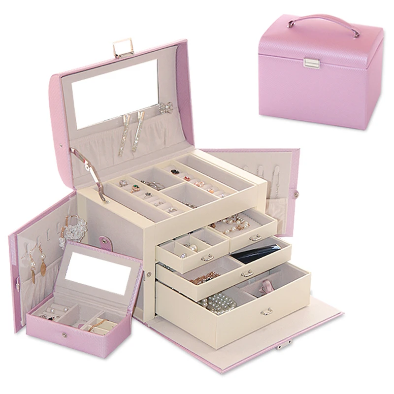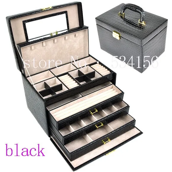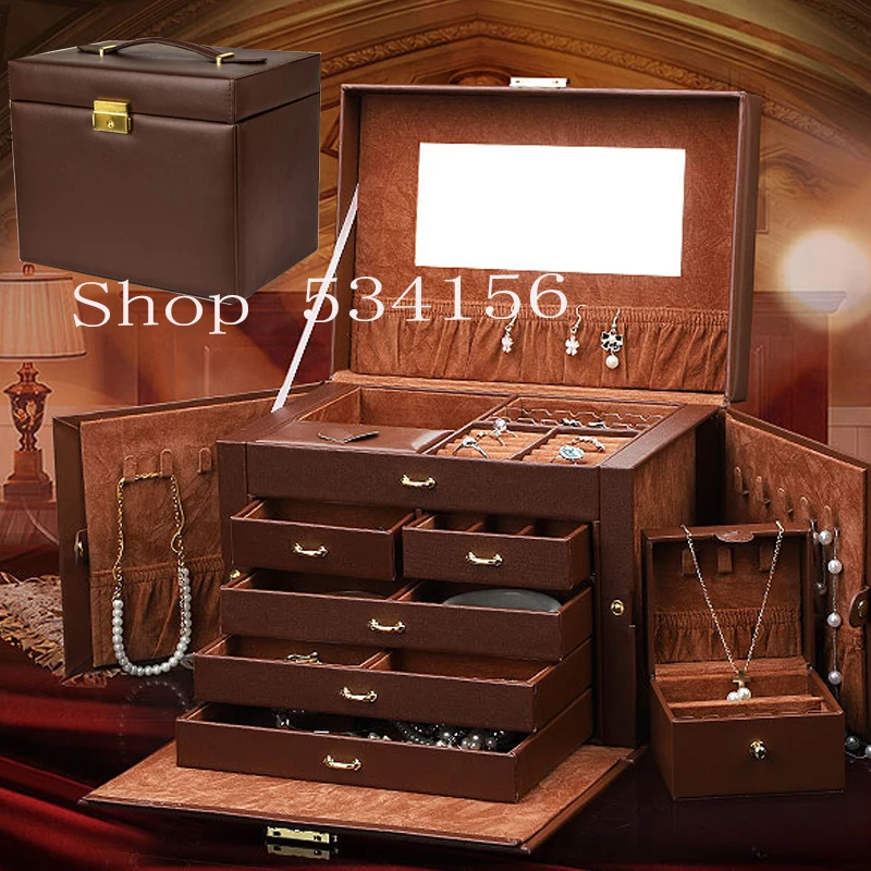 Бесплатная доставка, Роскошная большая 5-слойная кожаная шкатулка для ювелирных изделий, витрина для сережек, свадебный подарок, Подарочная коробка, витрина