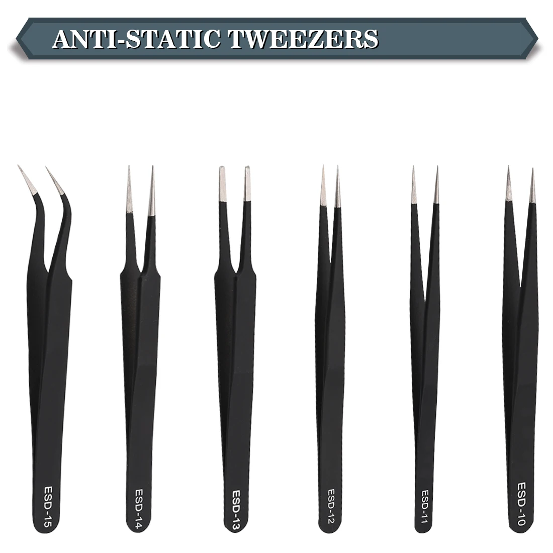6 шт.лот набор антистатических прецизионных пинцетов из нержавеющей стали, Прямой пинцет, инструменты для ремонта электроники