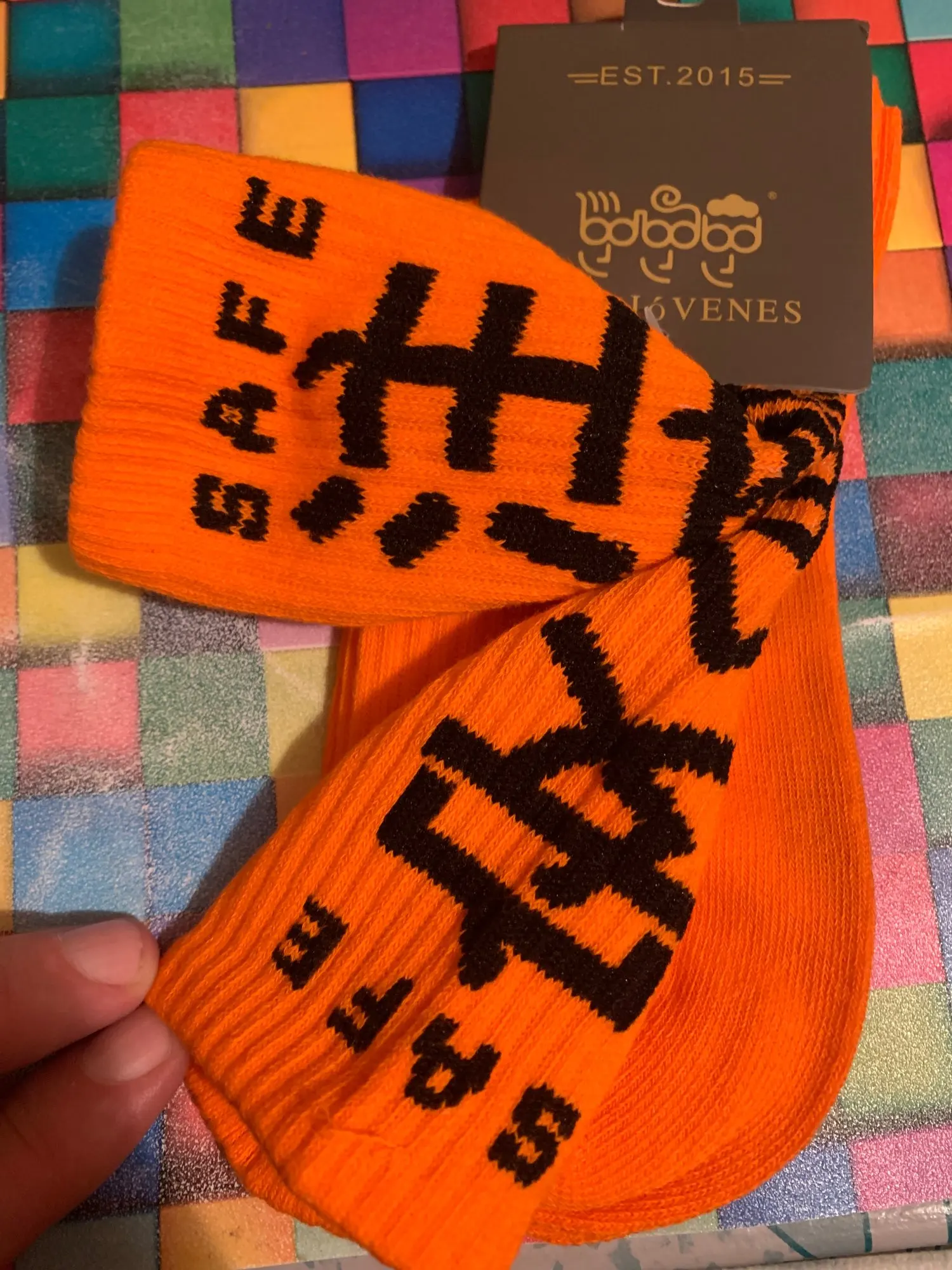 очень быстрая доставка - 1,5 недели, качество носков отличное, яркие и эластичные