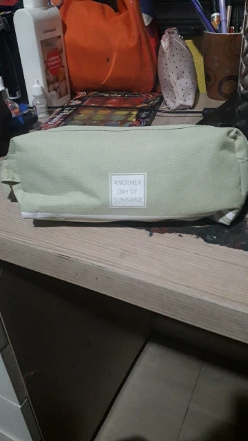 PERFEITO!!! chegou super rápido, o prazo era de tipo um mês e chegou em uma semana. a qualidade é ótima, estojo muito espaçoso. exatamente como no anúncio, a cor é linda. entre o estojo e os objetos tem tipo um forro, acho que para caso vaze tinta de uma caneta não suje o estojo. ótimo custo benefício