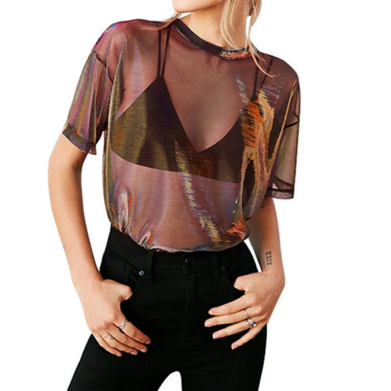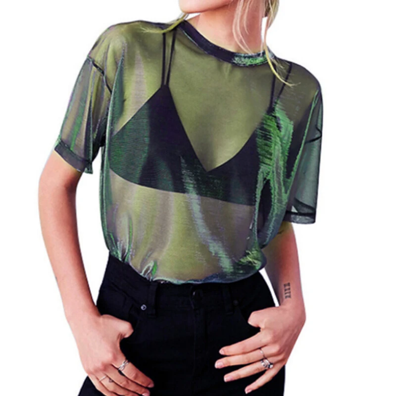 Женские футболки в стиле Харадзюку, прозрачные повседневные свободные летние футболки, топы в стиле панк, размера плюс, футболка с коротким рукавом, туника, топы