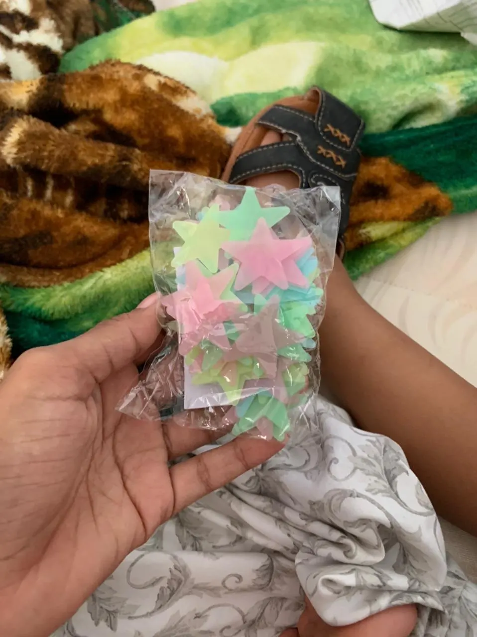 Основные характеристики:Примечания: 50 шт. разных цветов.Материал: пластикРазмер: диаметр около 3 смТема: звездный узор1. Может поглощать светильник и светиться в темноте2. Можно использовать для стен, клеток и любой гладкой поверхности.3. Хорошо разлагается в детской спальне.4. Поместите изделие под солнцем примерно на 10 минут, затем он светится в темноте.Подходящий Случай: спальня.