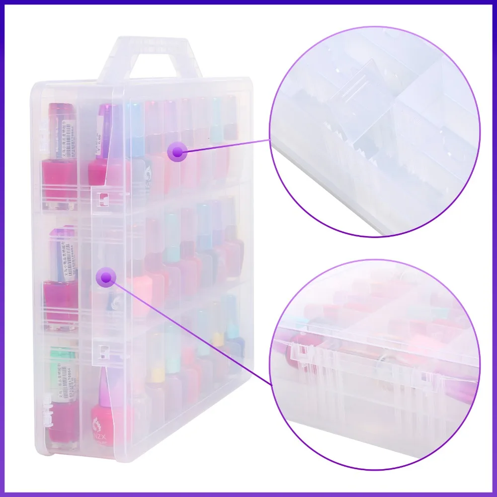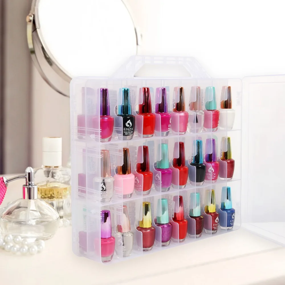 Пластиковый бокс для хранения лака для ногтей, 48 ячеек, портативная двухсторонняя подставка-держатель для макияжа, органайзер для лака для ногтей с эфирными маслами