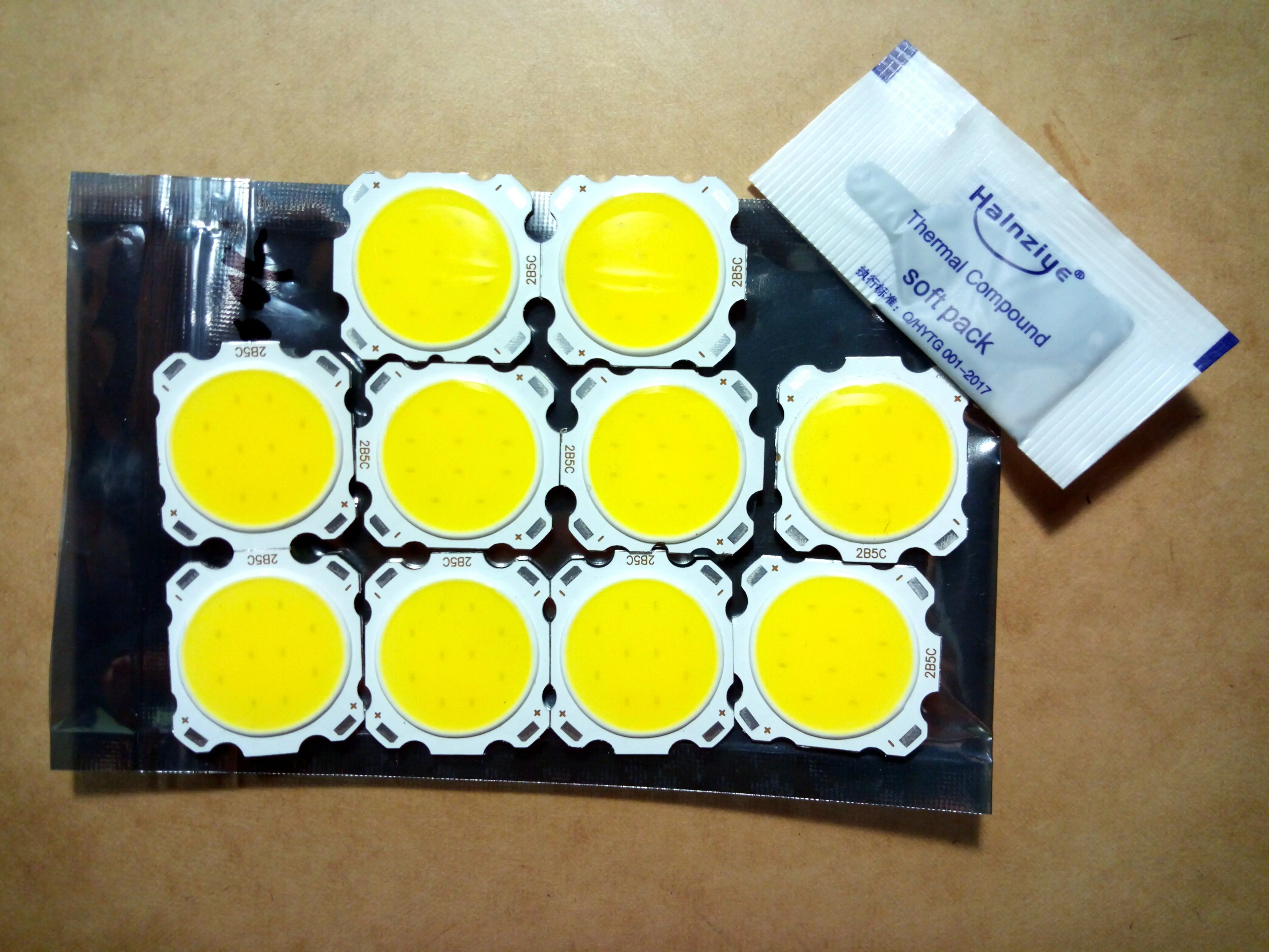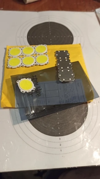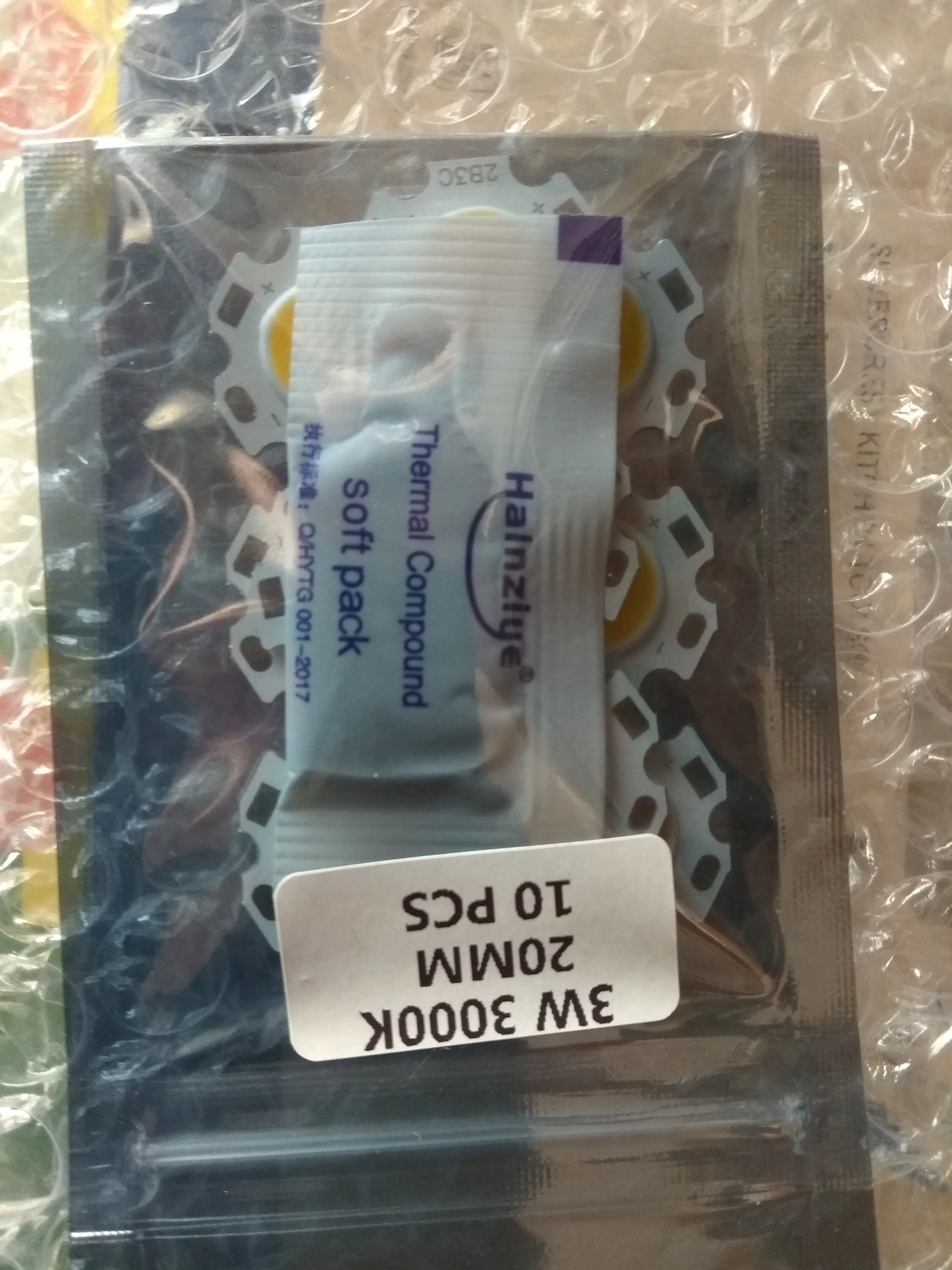 Заказывал 3W диаметрами 20 мм и 28 мм. С матрицей на 20 мм прилагался пакетик с термопастой, с 28-нет. Зажигаются равномерно. Спасибо продавцу, рекомендую к заказу.