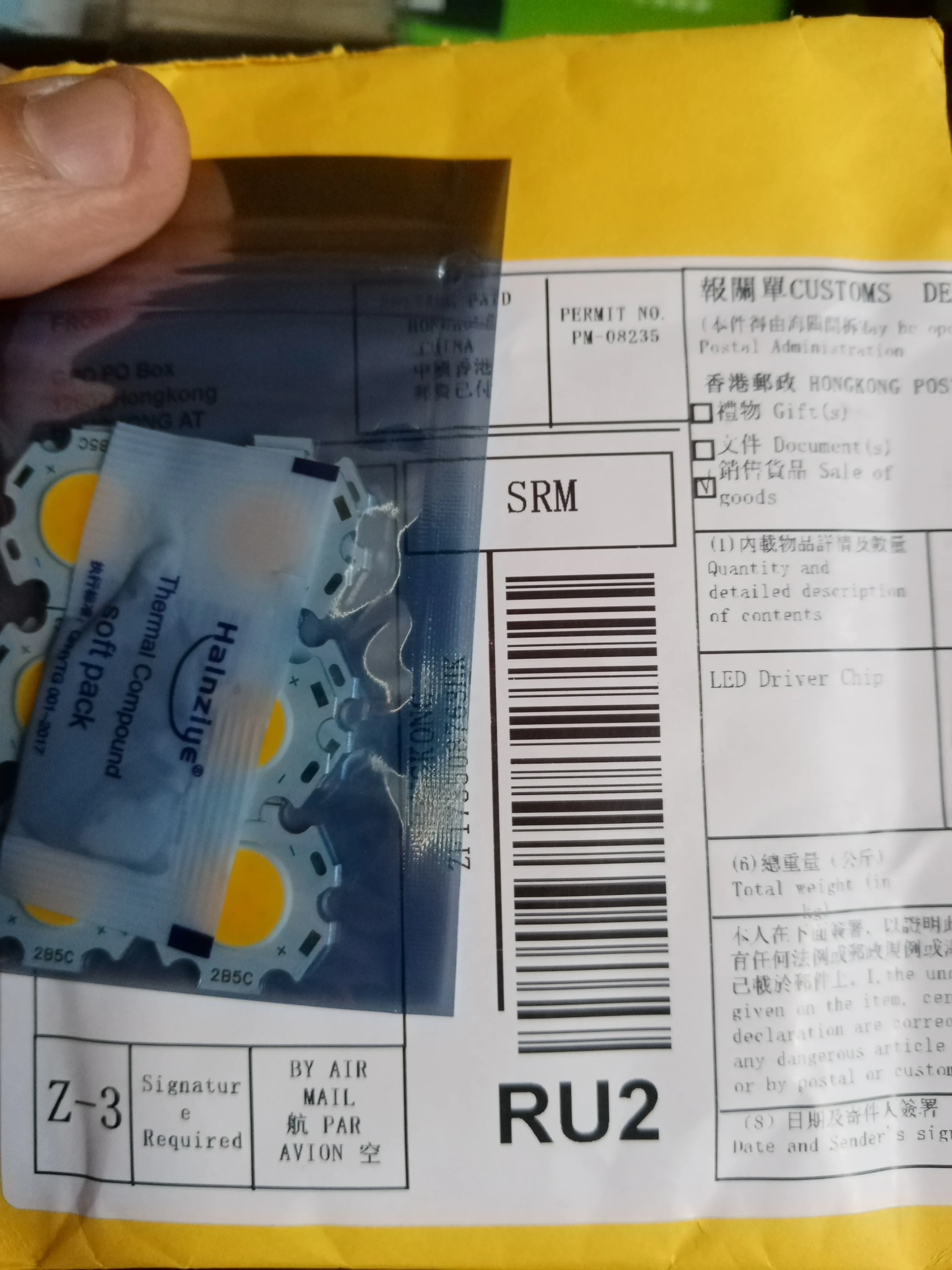 заказ прибыл за 2 недели, в одном пакете вместе с другими заказами. упаковано отлично, пришло без повреждений. проверил в работе , загорается и светит. в комплекте к светодиодам продавец положил маленький пакетик теплопроводной пасты, к покупке рекомендую.