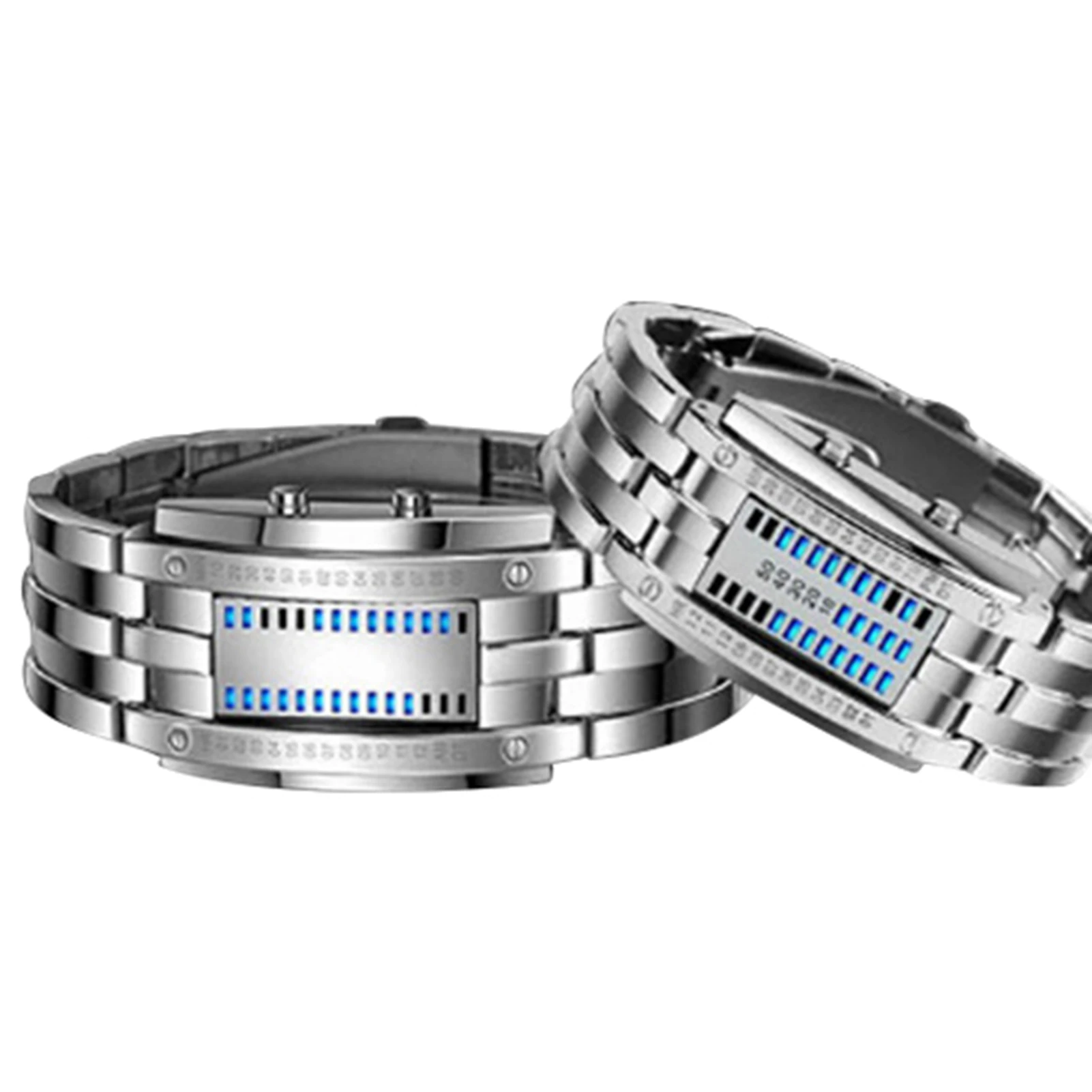 Часы наручные для влюбленных, модные роскошные светодиодные, из нержавеющей стали, с браслетом и датой, спортивные