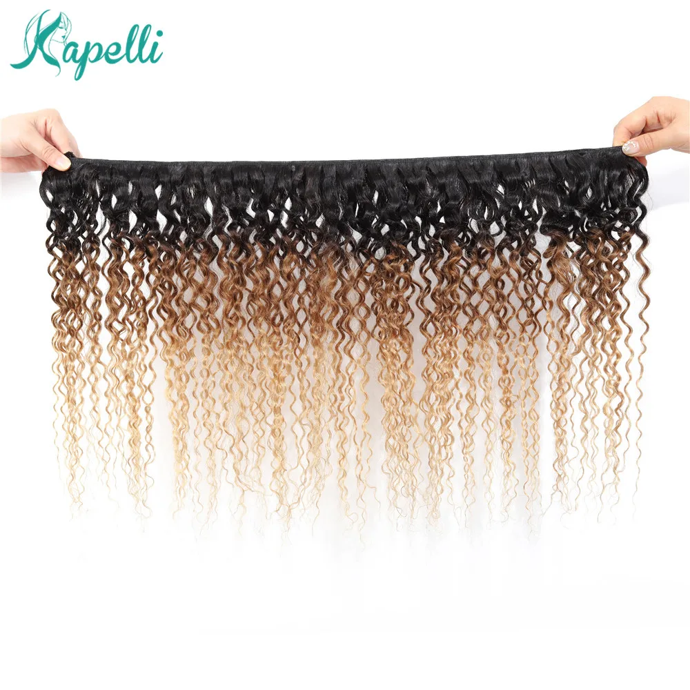 Пучки кудрявые, натуральные кудрявые пучки волос бразильские пряди с эффектом омбре, 1b3027, пряпряди блонд для наращивания, 3 4 пучка