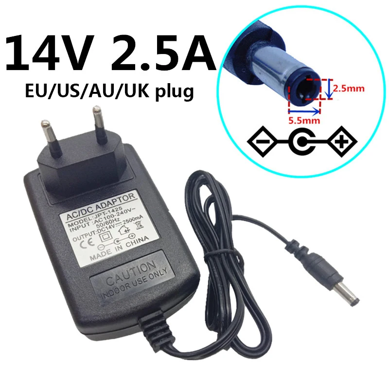 14 в 2.5A адаптер питания переменного тока 100-240 В в постоянный ток 14 вольт 2500ма конвертер питания US AU UK EU штекер 5.5x2.5мм адаптер