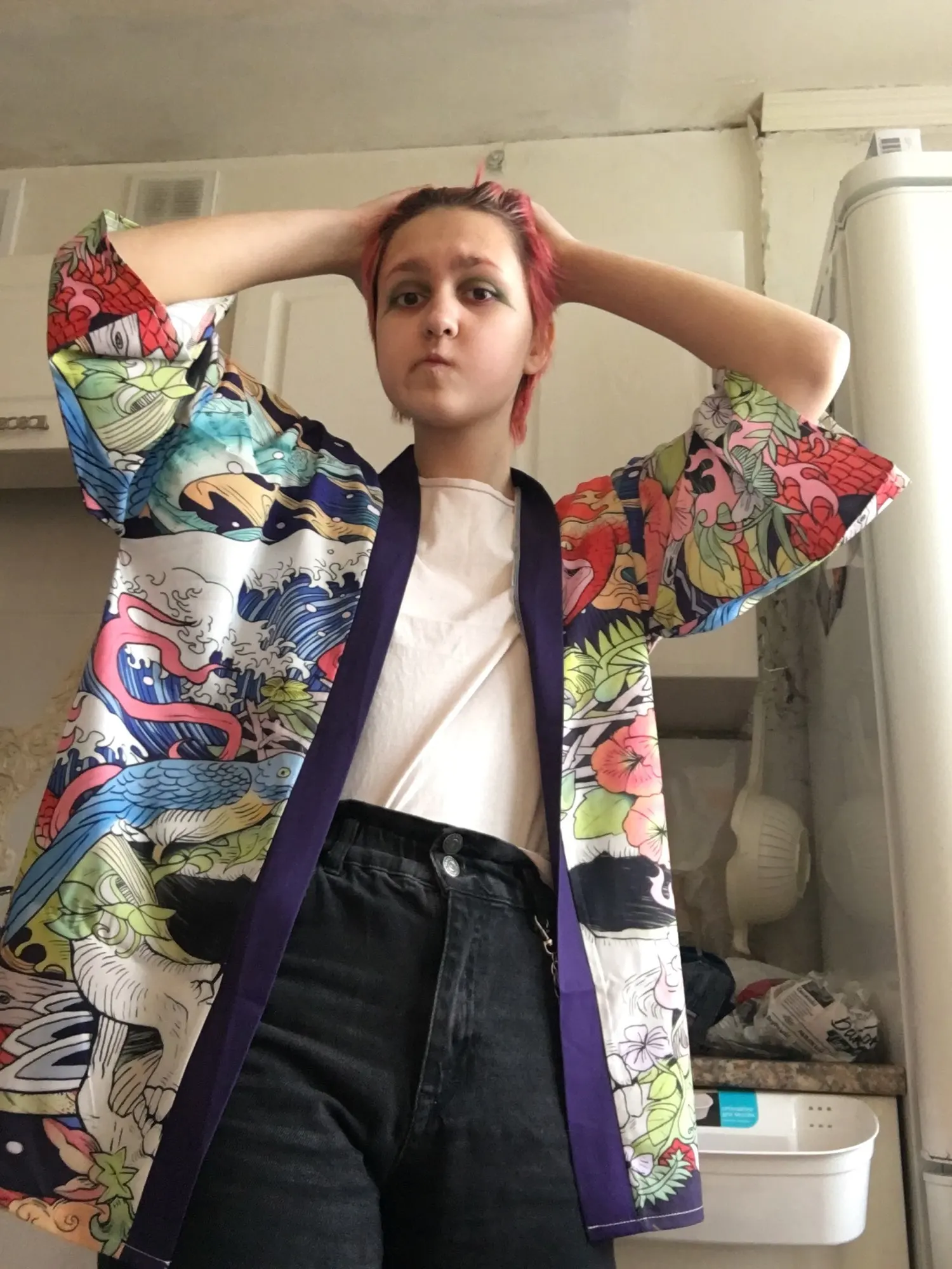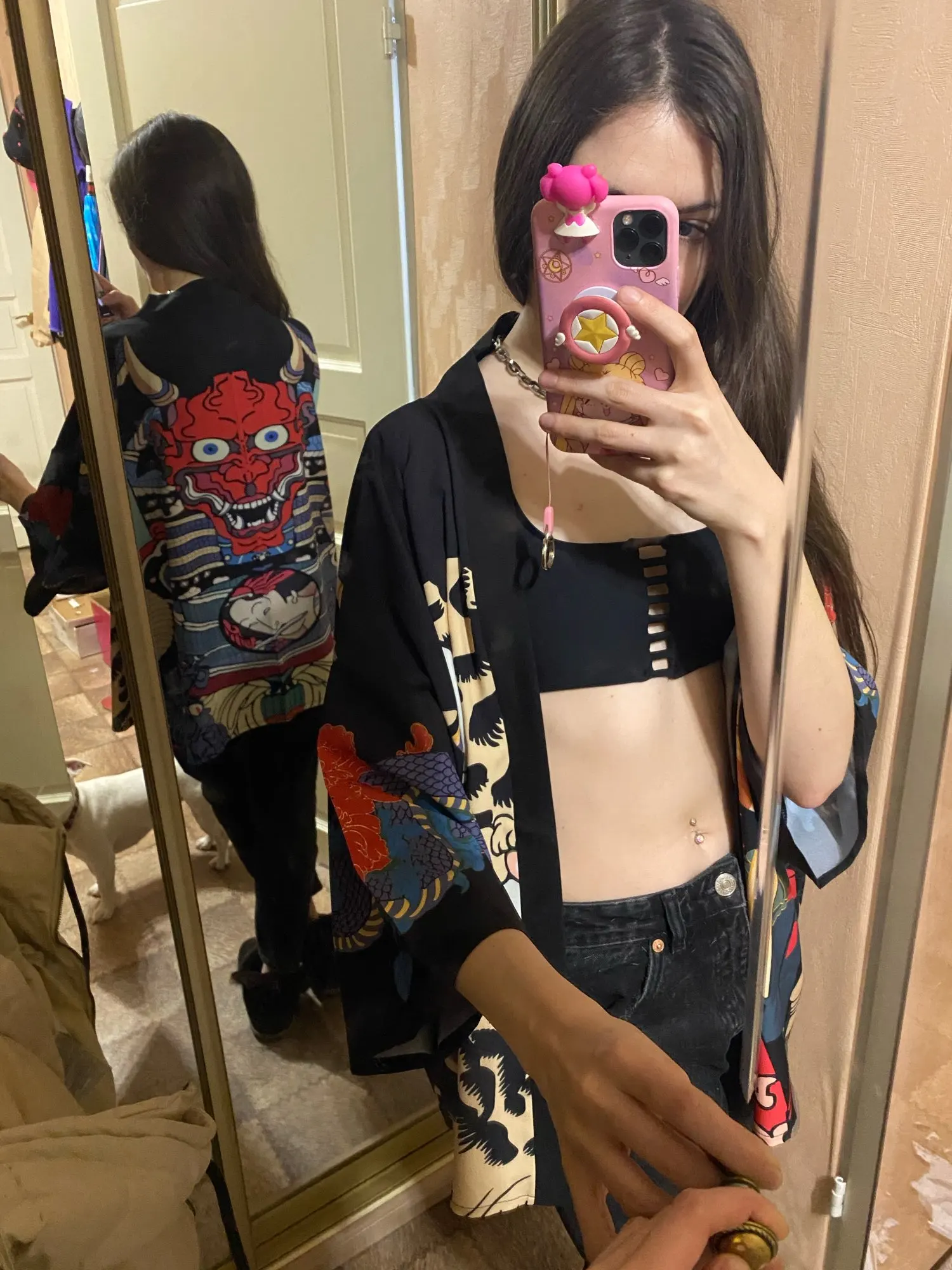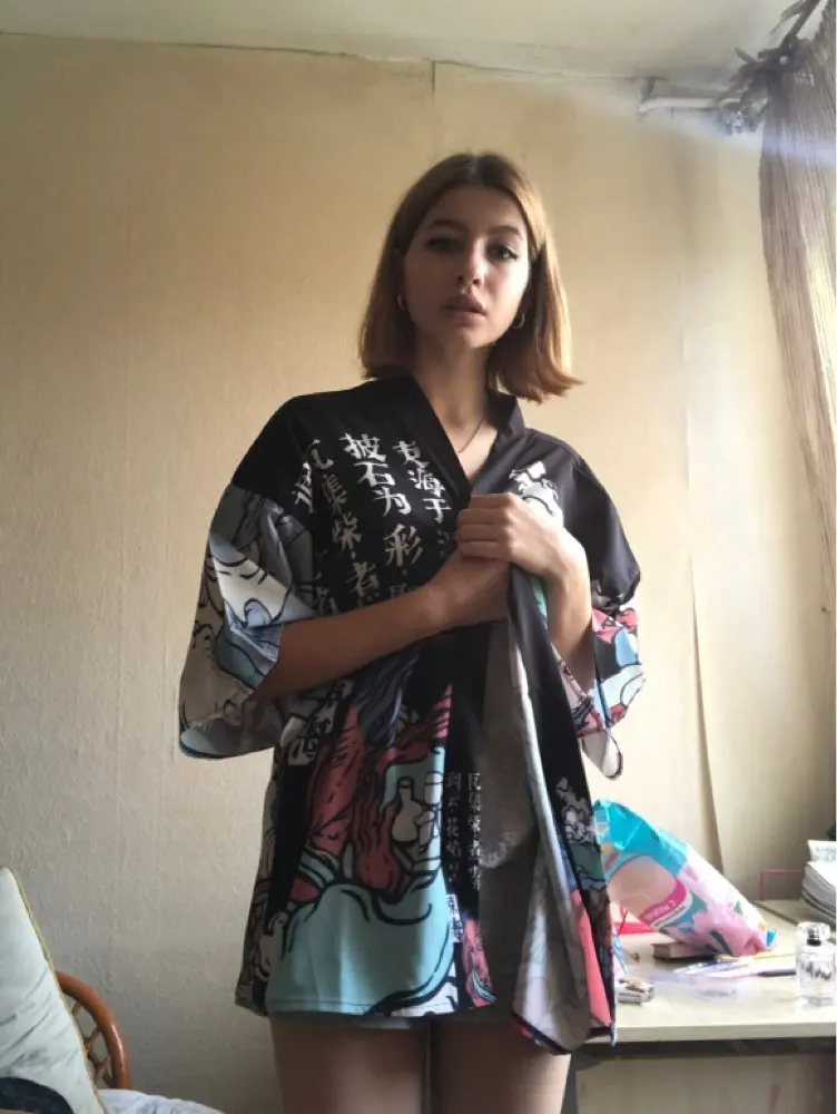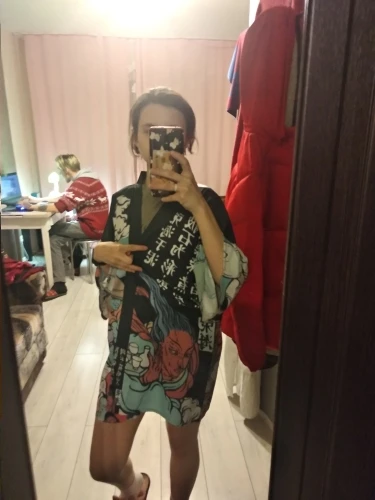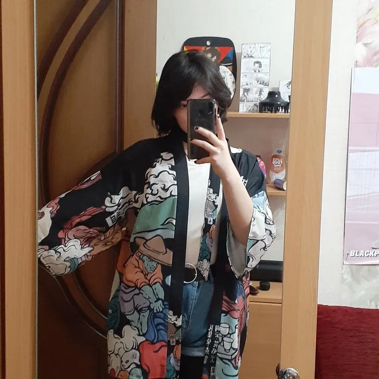 Нереально крутое кимоно. Буду носить под шорты и топ. Можно с поясом,можно без, но будьте внимательны,есть кимоно без пояса,надо смотреть. Доставка около месяца