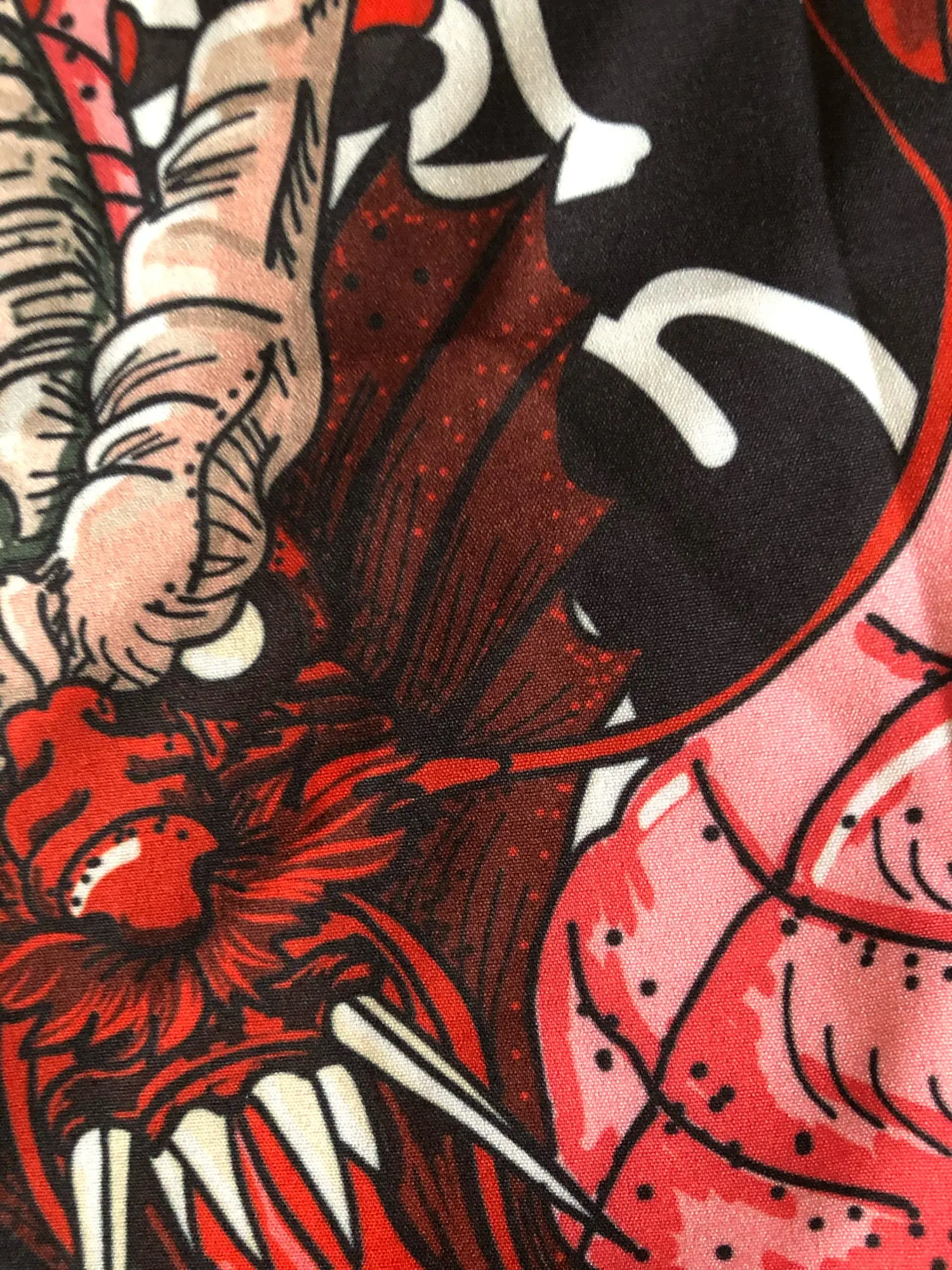 Ребята это просто пушка! Довольно быстрая доставка! Никаких видимых дефектов не обнаружено, ткань приятная на ощупь, летящая, никаких неприятных запахов, не мятое, все отлично упаковано! И принт бешено крут! Думаю закажу ещё не одно такое кимоно, спасибо Вам огромное!! Уже не вылезаю из него )