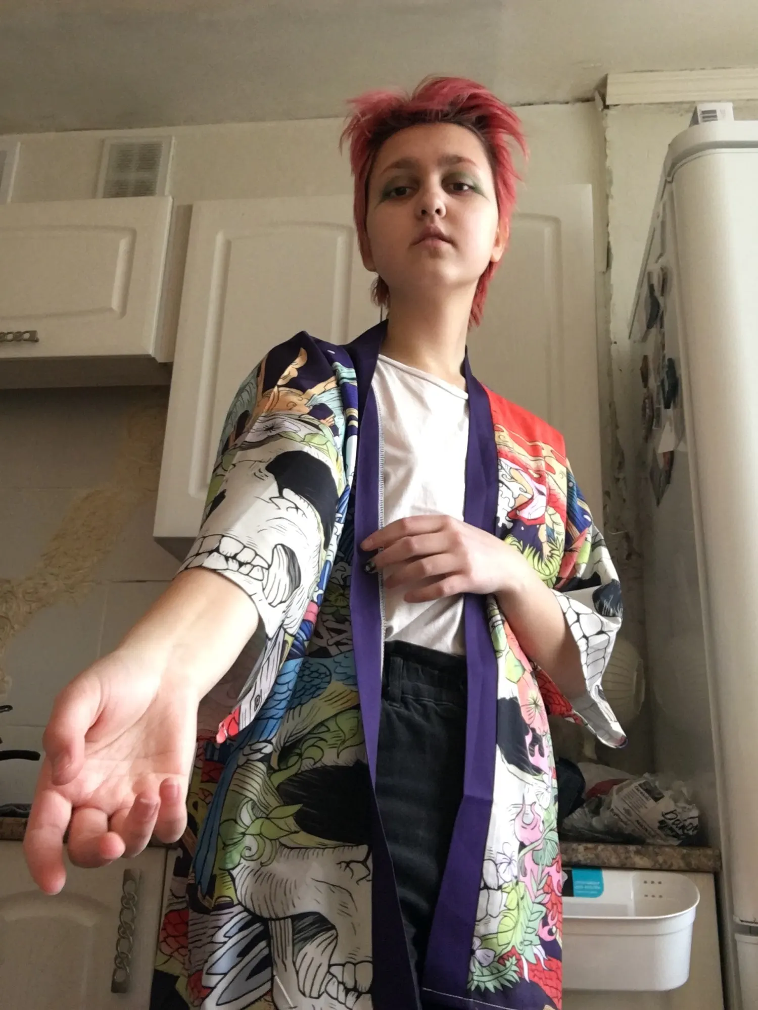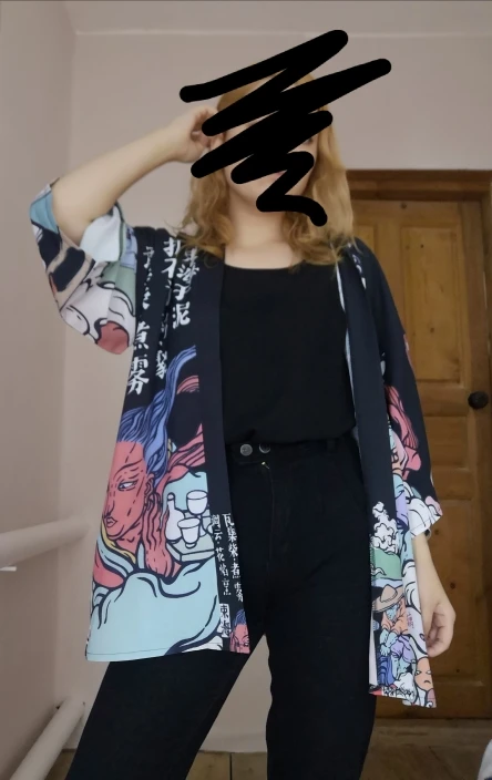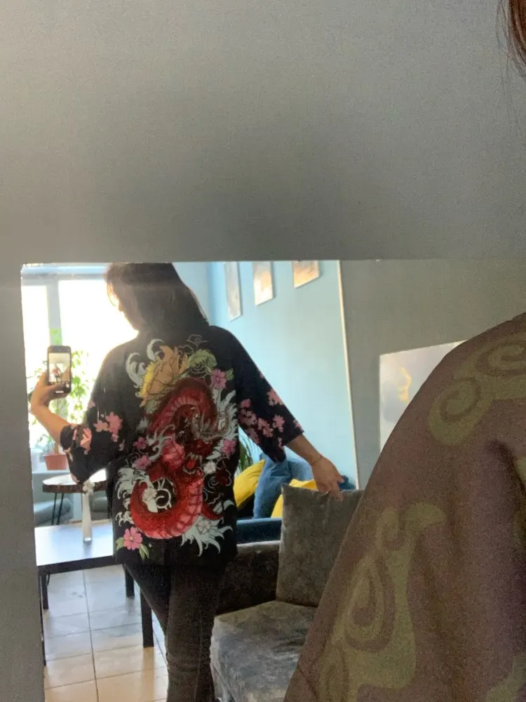 хей-хей!! кимоно оказалось просто шикарным, не смотря на блекловатый рисунок (который кстати не портит эту вещь). Отдельный лайк за то, что мама оценила эту вещь, хотя она очень привередлива и изначально ей кимоно не понравилось. Ещё я боялась что кимоно мне будет маловато (я 173-175 см), но как видите все шикарно