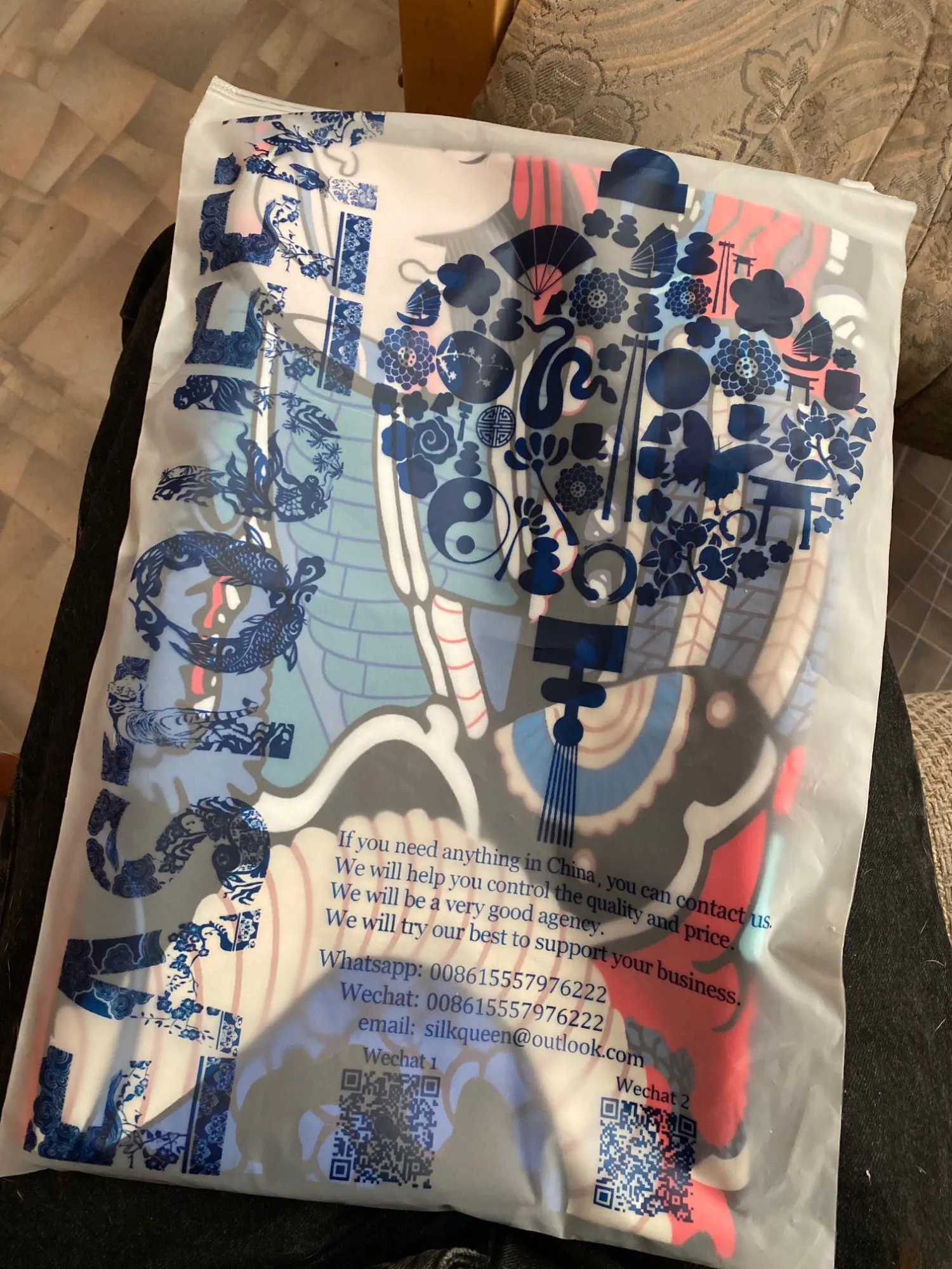 Пришло ОЧЕНЬ быстро (за 8 дней!), красиво выглядит, хорошо упаковано, ткань оказалась на ощупь не такой, как я представляла, но качество в принципе хорошее