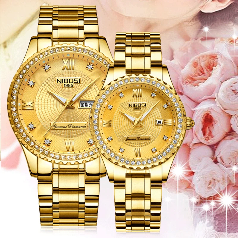 Часы наручные NIBOSI для влюбленных, брендовые роскошные золотистые Кварцевые Подарочные дамские