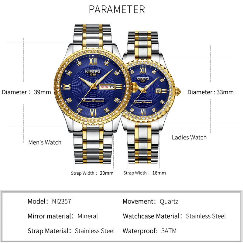Парные часы NIBOSI для женщин и мужчин, Роскошные Кварцевые наручны...