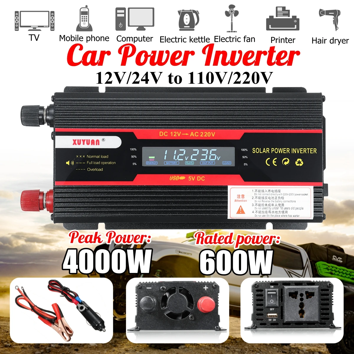 Автомобильный инвертор с ЖК-дисплеем, преобразователь напряжения 12...