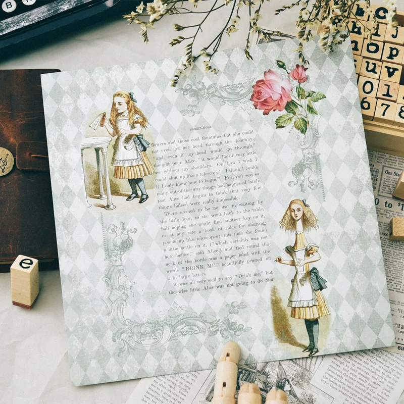 Бумажная подкладка Алиса в стране чудес junkжурнал, кардсток, чувство осени, декоративный дизайн, набор для упаковки подарков на фестиваль