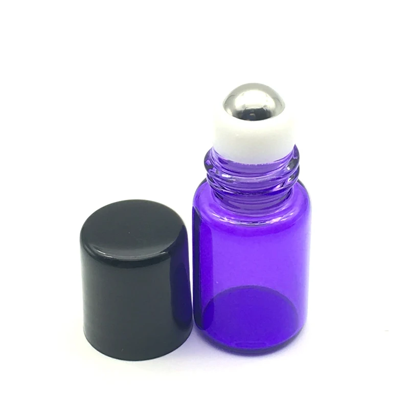 Пурпурно-синяя стеклянная бутылка в рулоне, пустая бутылка для духов с эфирным маслом, 2 мл, рулонная черная пластиковая бутылка с крышкой