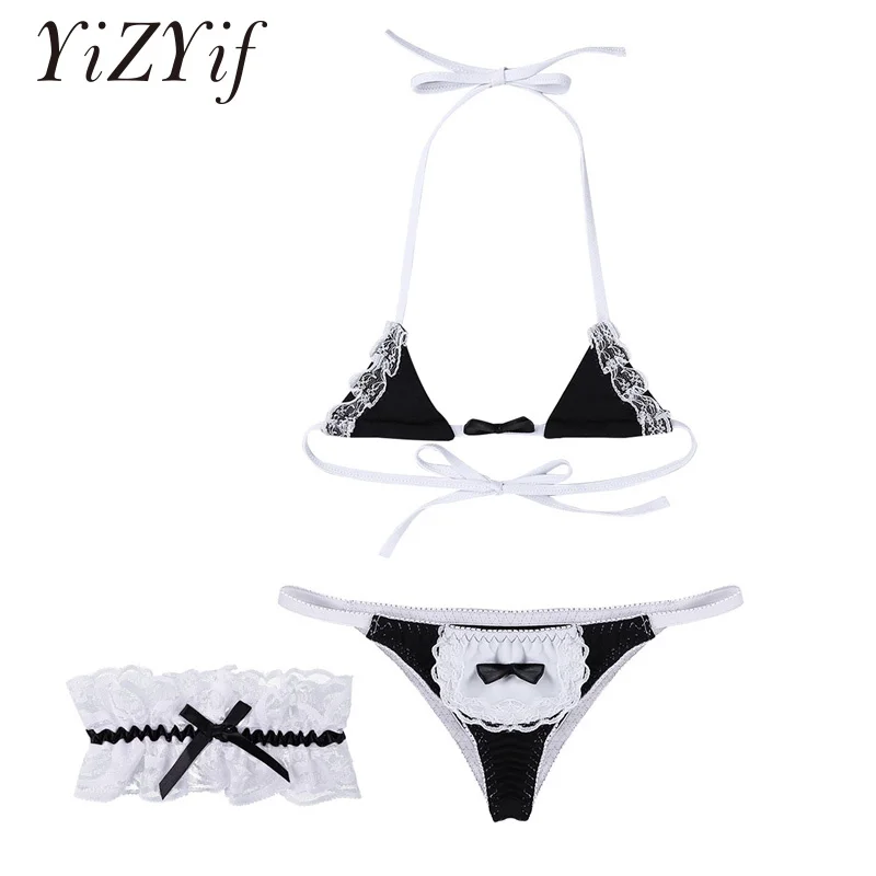 YiZYiF женское бикини, комплекты нижнего белья, Порно мини-юбка, аниме косплей, японский Лолита, кружевные комплекты с тремя точками бюстгальтера, сексуальное нижнее белье