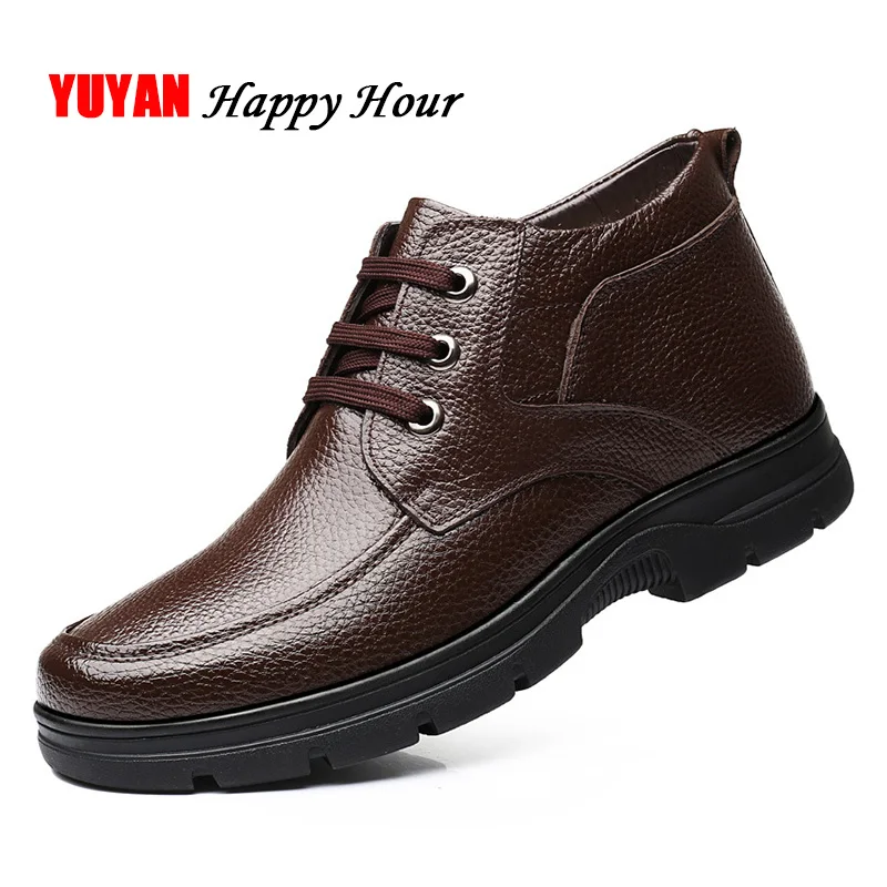 Мужские ботинки из натуральной кожи, зимние теплые ботинки до лодыжки, с хлопком, черные, A438