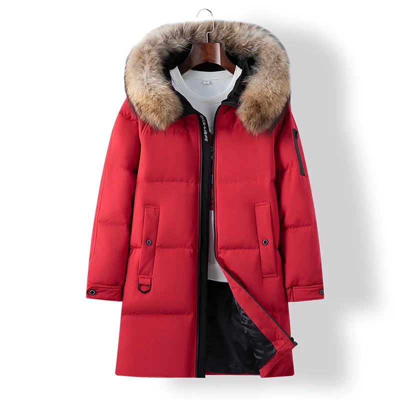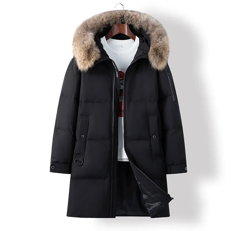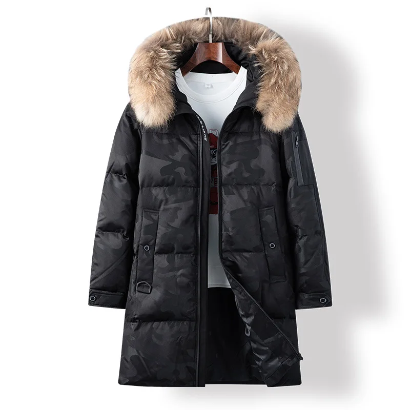 Мужская камуфляжная куртка, длинная куртка на белом утином пуху с меховым воротником в русском стиле, размеры до 4XL, до-30 C