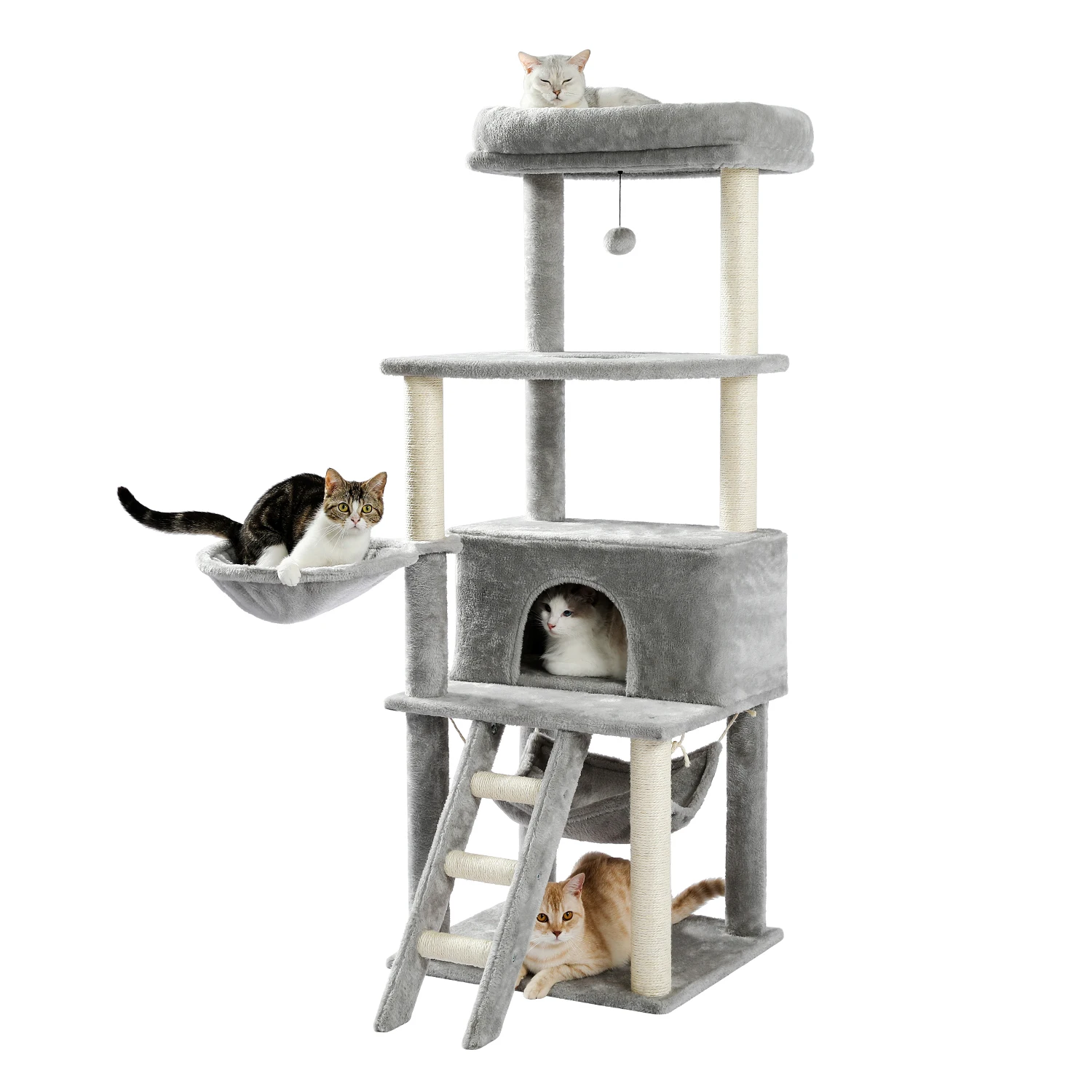 ·Забавная игра: Многоуровневый дизайн предлагает идеальный игровой домик для ваших кошек, чтобы свободно прыгать; Когтеточки и нижняя площадка покрыты натуральная сизалевая веревка избавляют вашу мебель от острых когтей