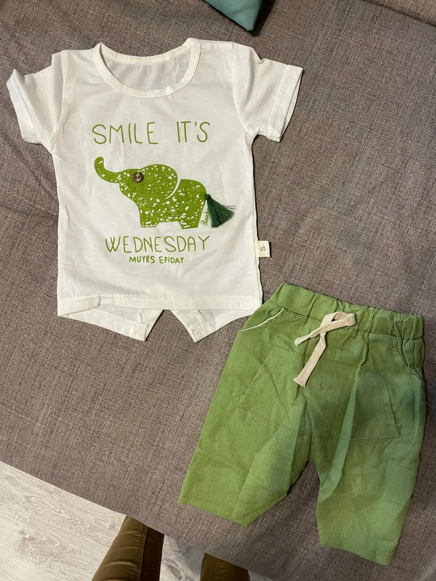 Одежда для маленьких мальчиков, 2018, летняя брендовая одежда для младенцев, футболки с коротким рукавом со слоном, топы штаны в полоску, детские костюмы