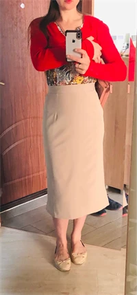 Размер L мне идеально подходит, у меня есть маленькая Талия, но действительно большие бедра! Я 5'4, а длина юбки была ниже икр. Качество юбки также хорошее; Я купил более тонкий стиль, так как в нем я выгляжу, не становится слишком холодно.