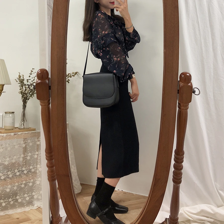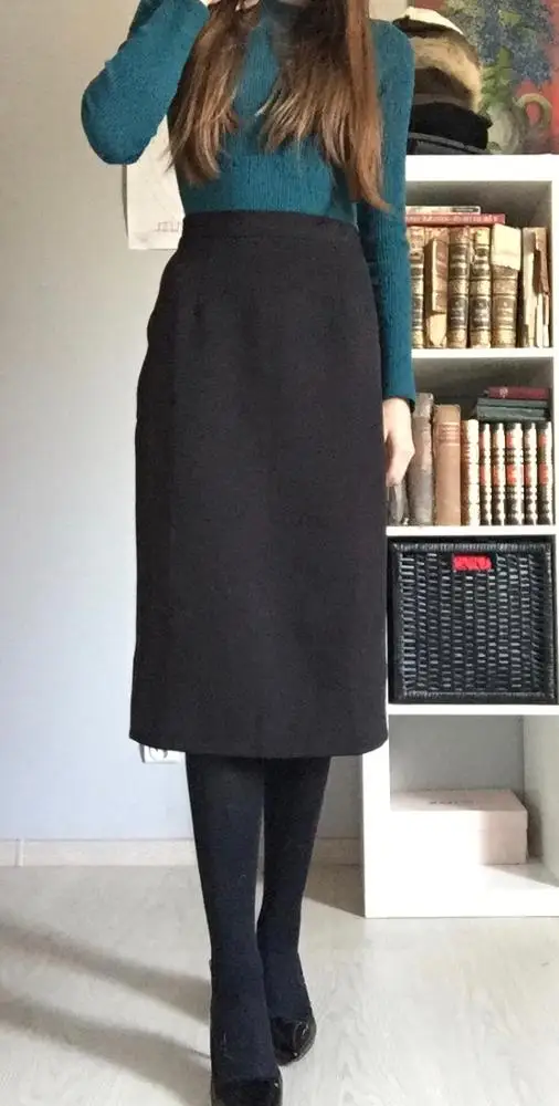 Юбка женская до середины икры, прямая, однотонная, черная, коричневая, Зимняя