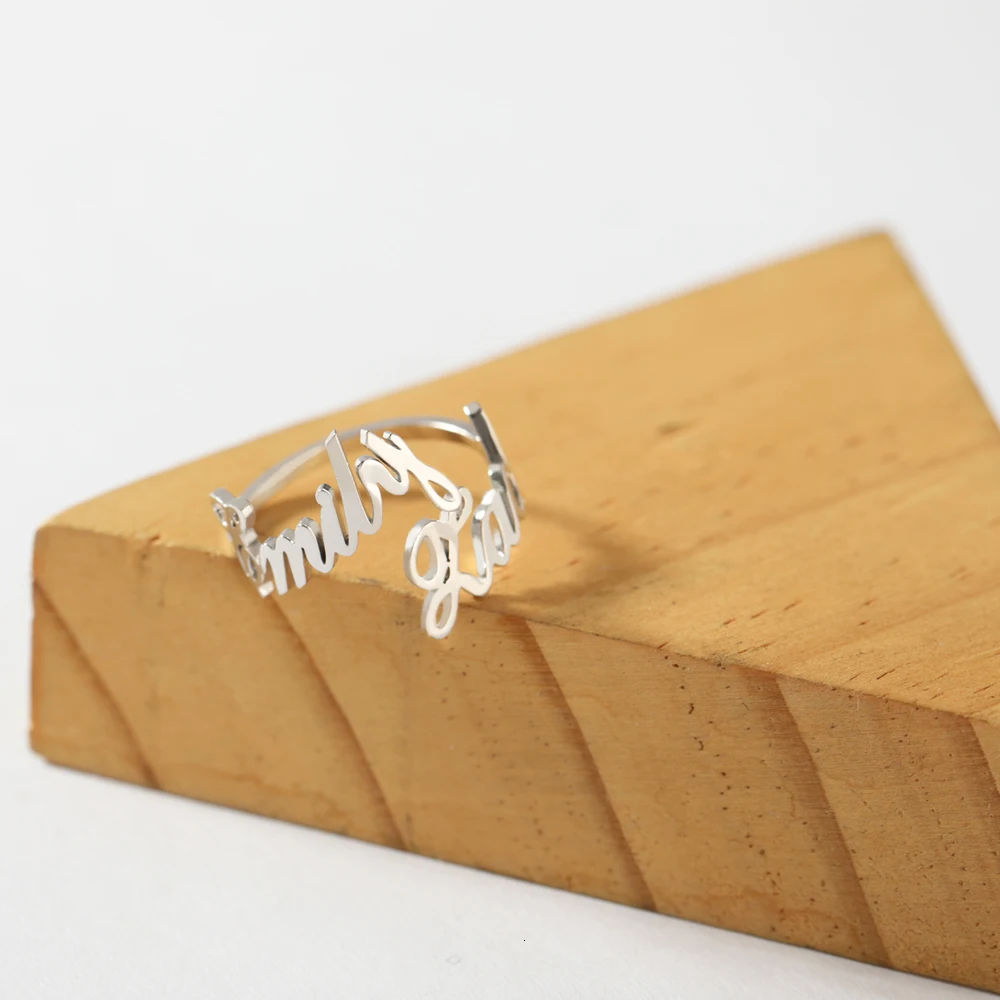 Двойное кольцо с именем на заказ, кольца с двумя именами на заказ, ...