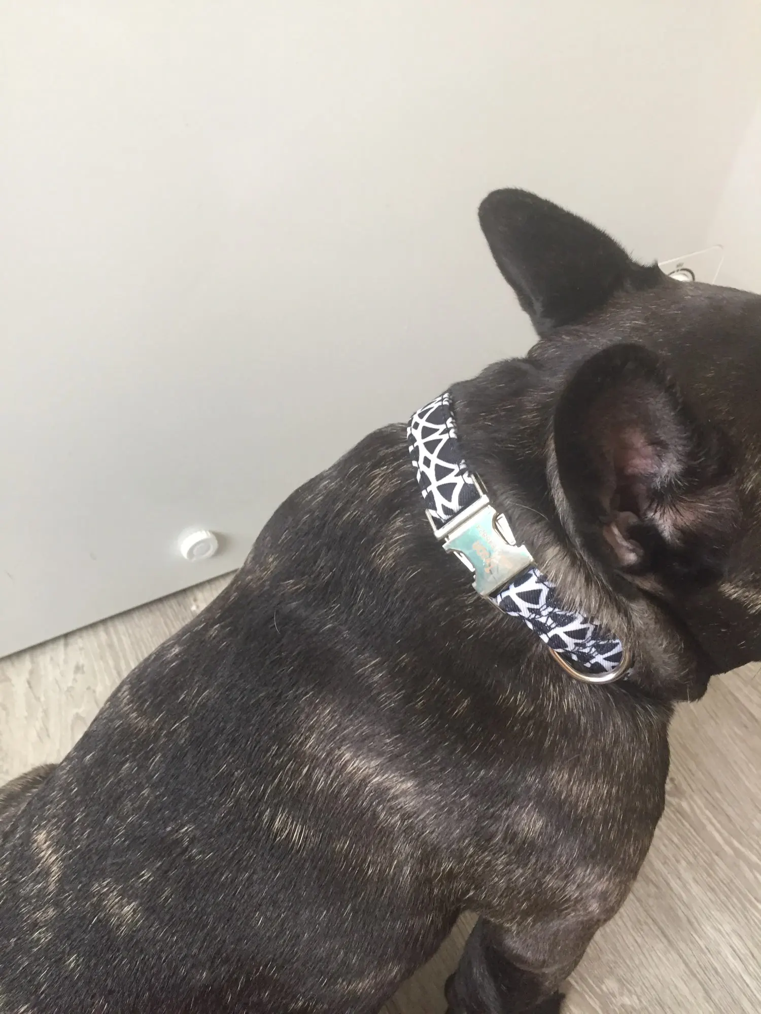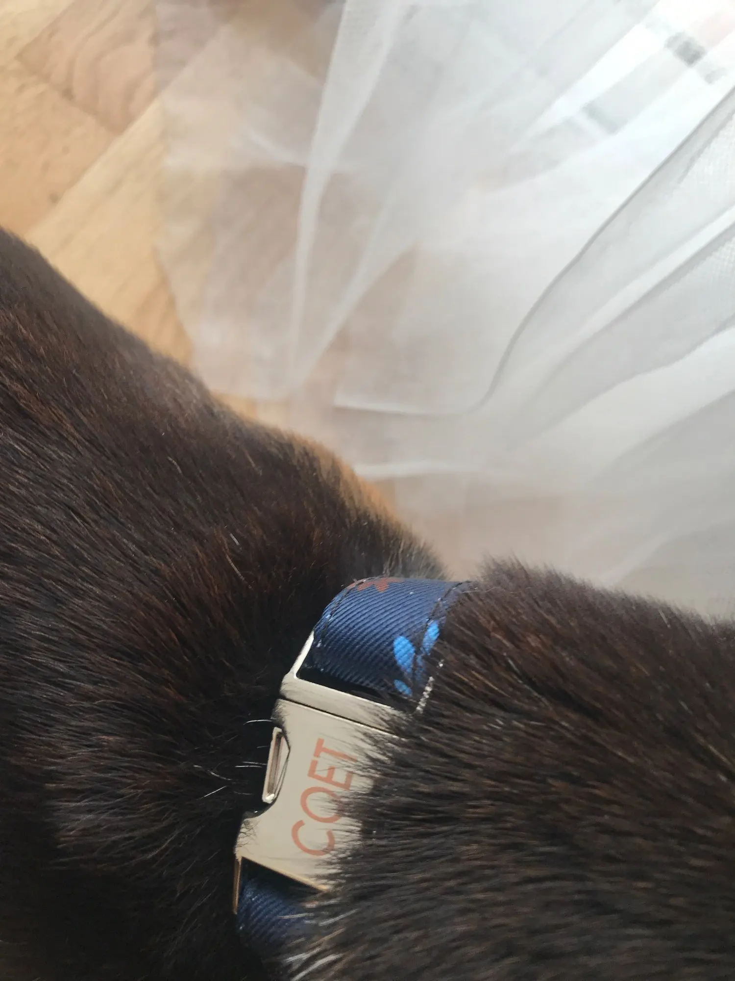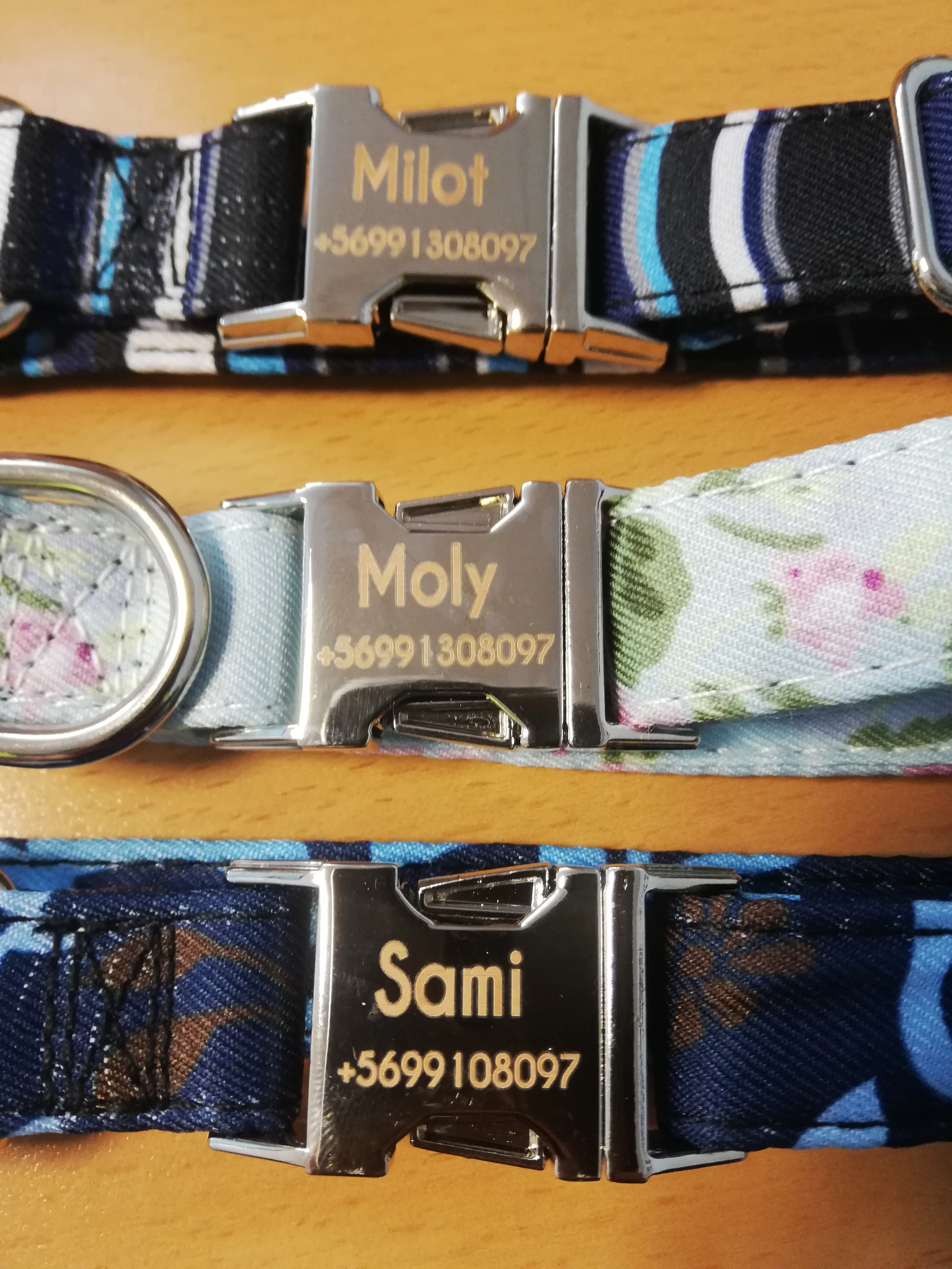 Очень красивый воротник, он выглядит хорошо сделанным и прочным. Зажим изготовлен из металла, и имя было выгравировано правильно.