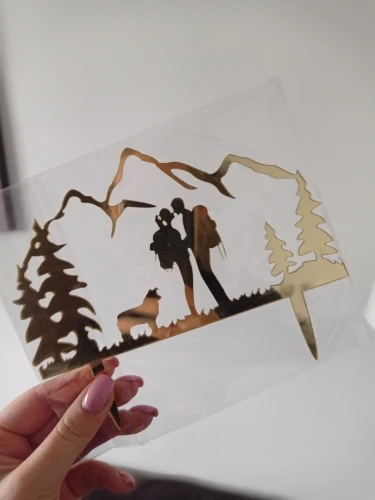 Топпер для свадебного торта Kiss Couple с собачкой из дерева золотого и серебряного цвета, Топпер для горного торта для активного отдыха, Свадебный Топпер для торта